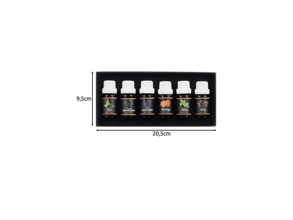 dlouhotrvající a rozmanité vůně - získáte 6 různých vůní vonných olejů, každá o objemu 10 ml , eukalyptus, pomeranč, čajovník, máta, levandule a borovice - každá z nich vnese do interiéru jinou atmosféru