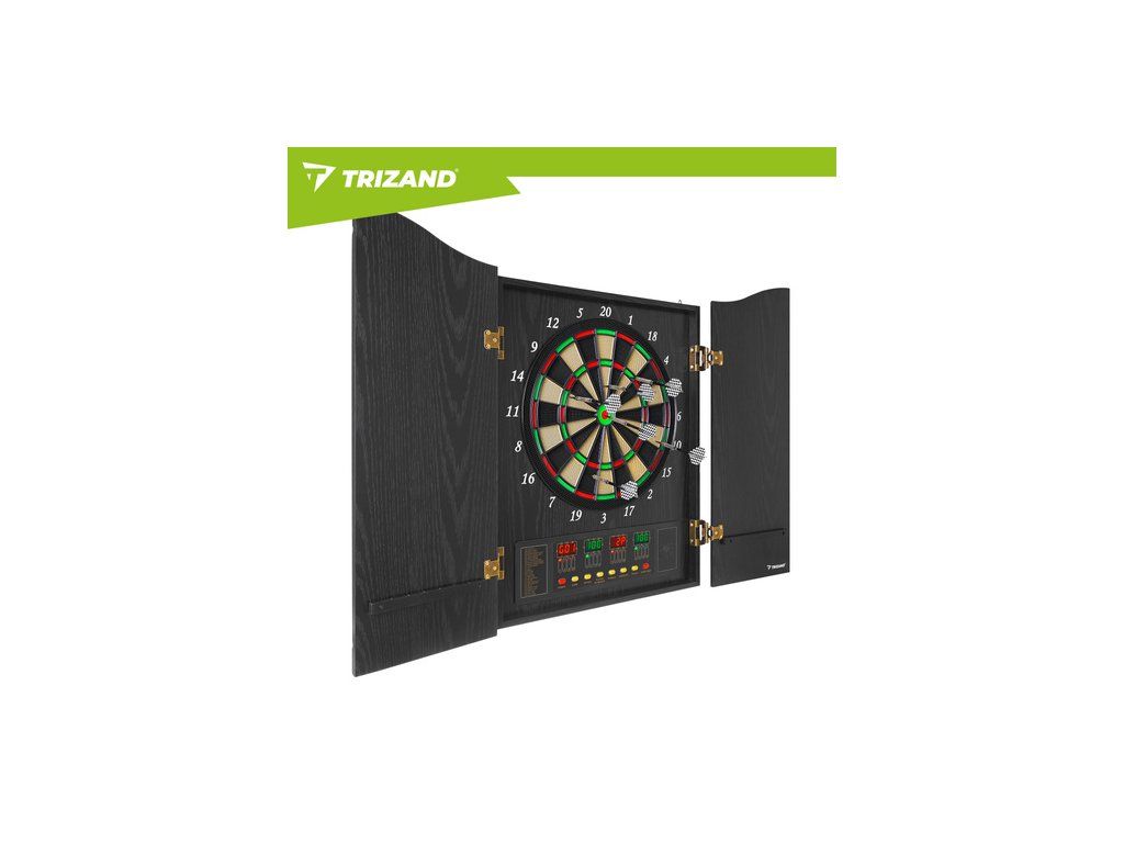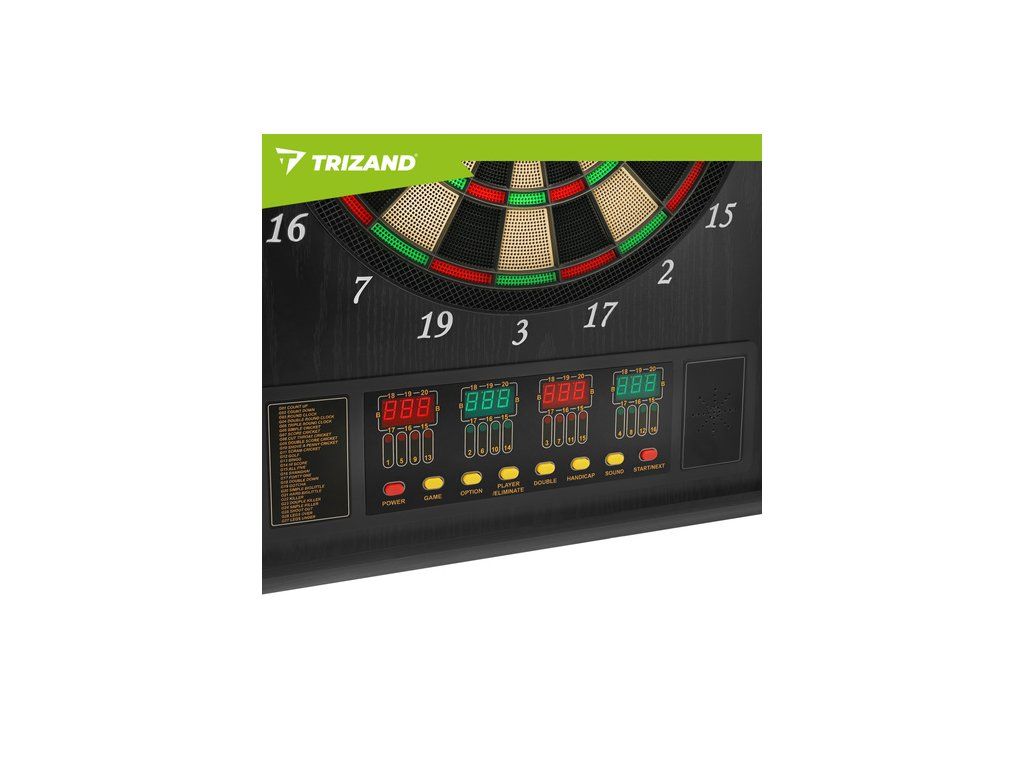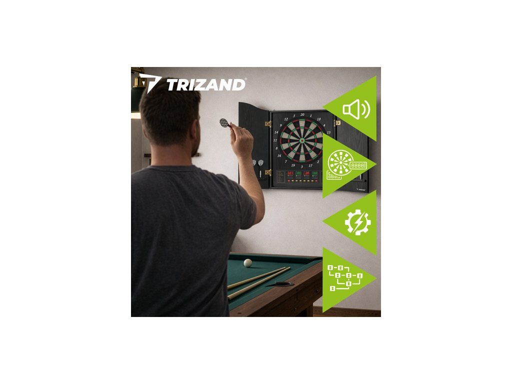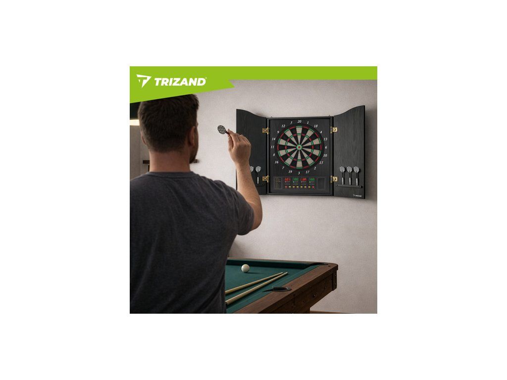Elektronický terč Trizand, automatický LED, 27 her, 243 variant, 16 hráčů, 6 šipek, 50 hrotů