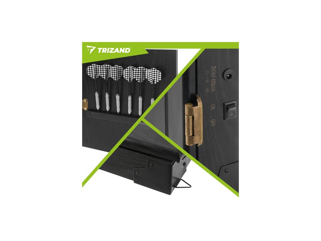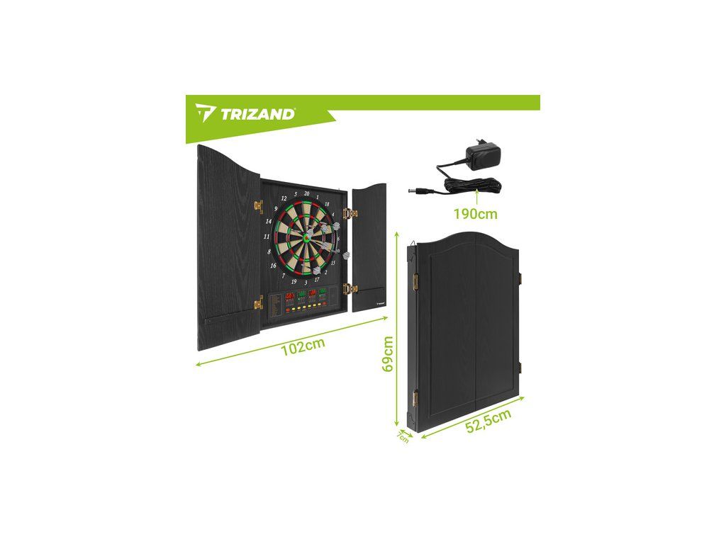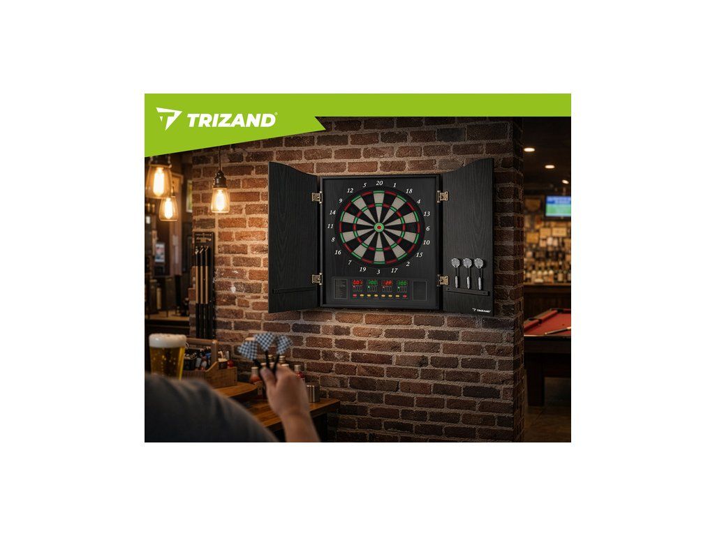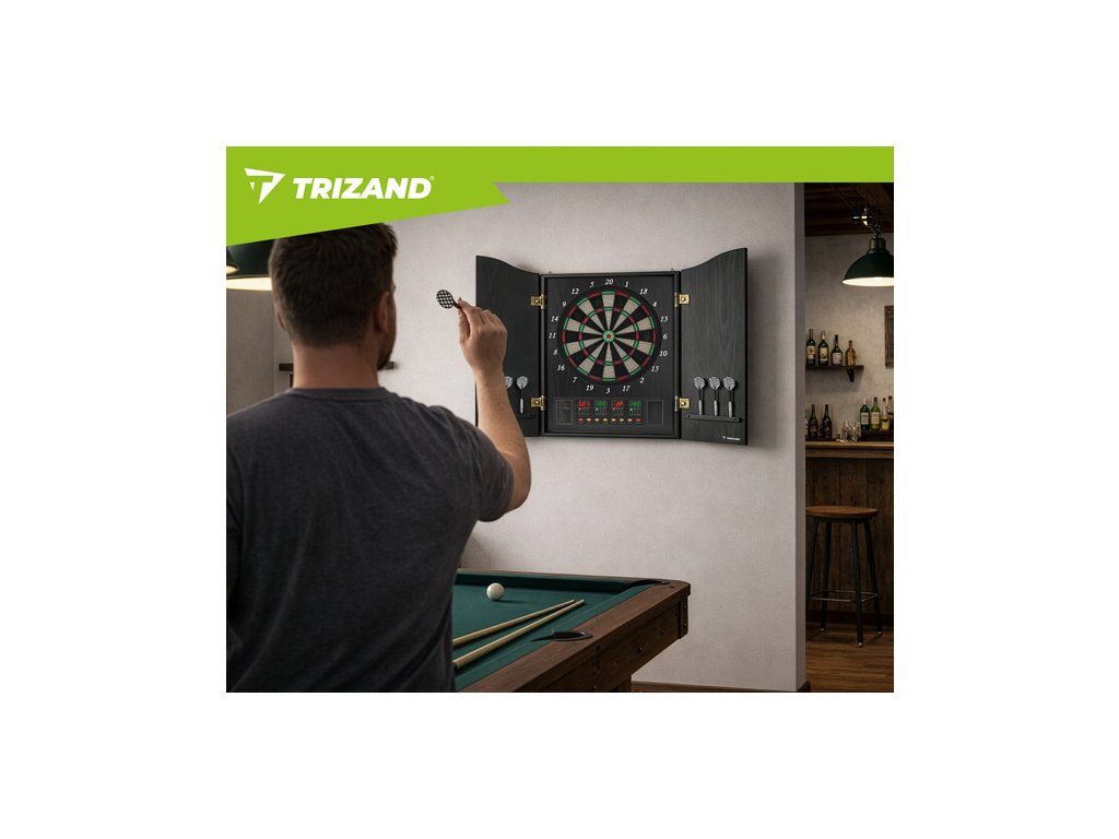 Elektronický terč Trizand, automatický LED, 27 her, 243 variant, 16 hráčů, 6 šipek, 50 hrotů