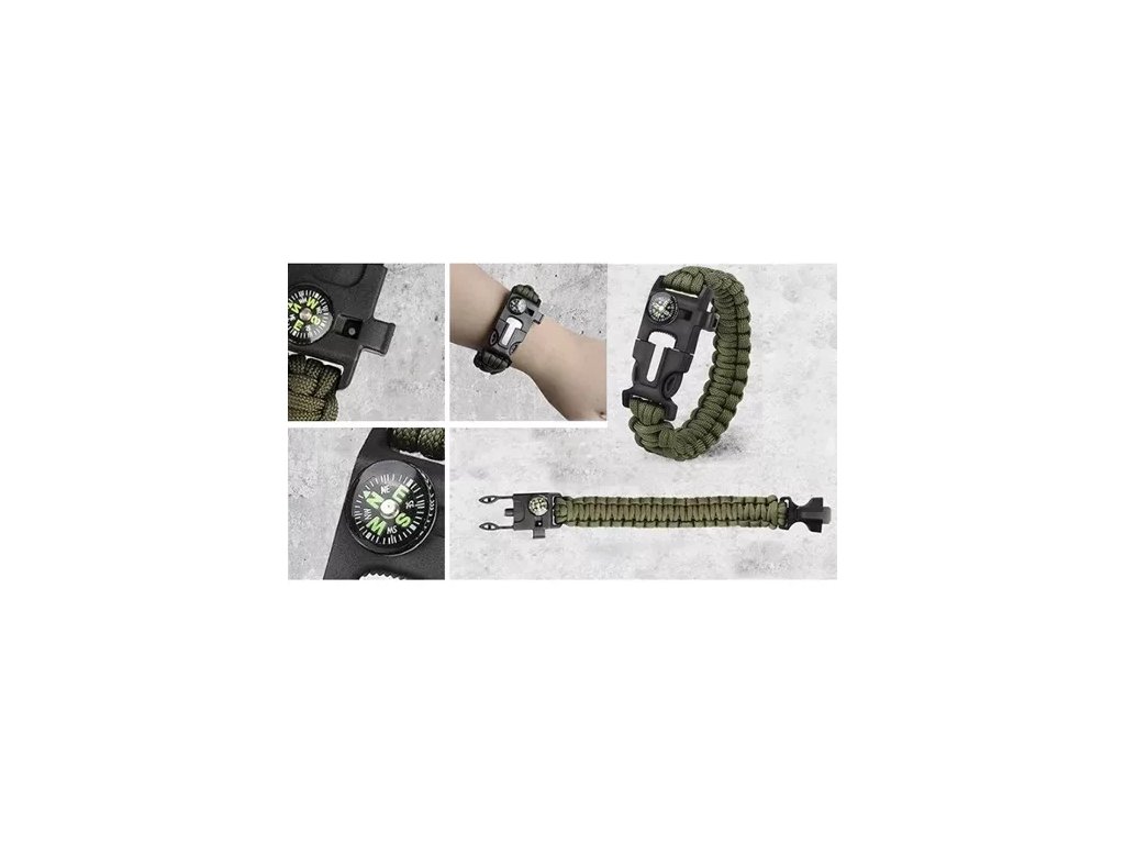 - paracord band - cca 350 cm paracord s kompasem, píšťalkou a zapalovačem