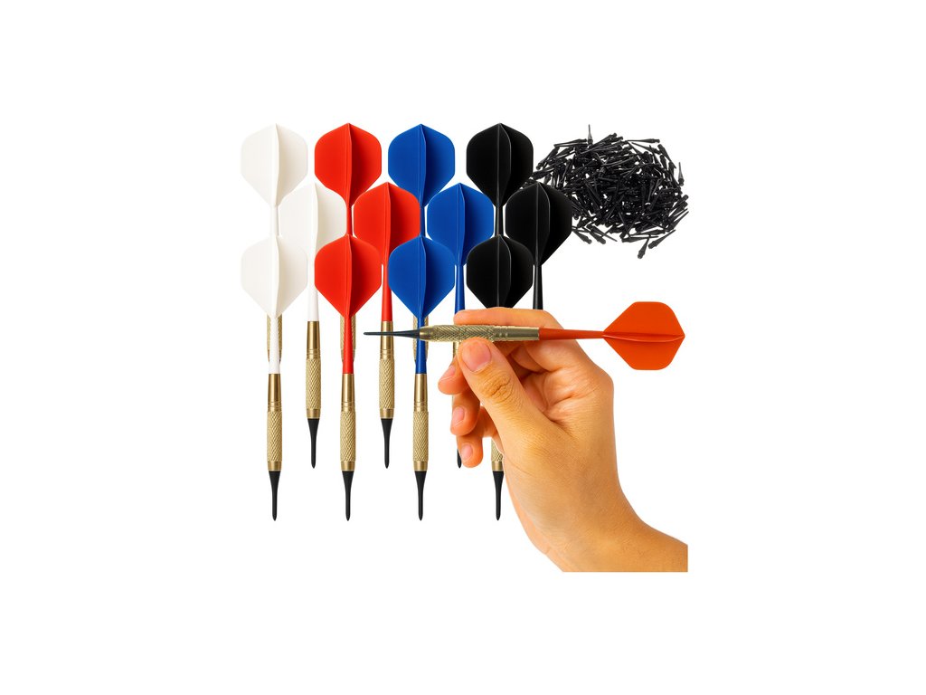 Šipky pro elektronický terč, sada 12 kusů, šipky, hroty, letky + příslušenství TRIZAND!
