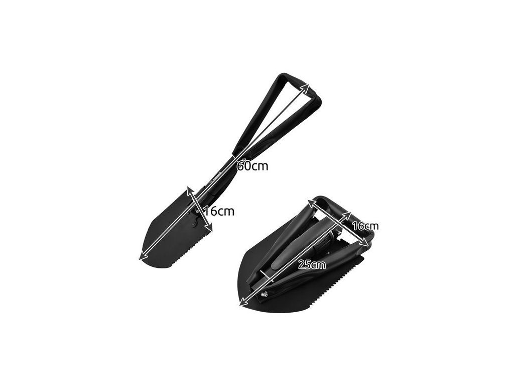 - SPECIFIKACE – barva: černá; materiál: ocel, hliníková slitina, železo, polyester; funkce: krumpáč, lopata, pila; složená velikost: 25 x 16 cm; rozložené rozměry: 60 x 16 cm; hmotnost: 1,099 kg; hmotnost balíku: 1,112 kg.