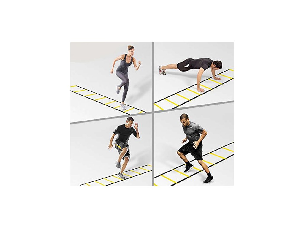 - PROCVIKUJE OVLÁDÁNÍ TĚLA – cvičení s cvičným žebříkem lze libovolně obměňovat a upravovat podle potřeby. Obvykle jejich základem je co nejkratší kontakt chodidla se zemí – takže byste měli skákat mezi příčkami co nejrychleji (dopředu, do stran, dozadu).