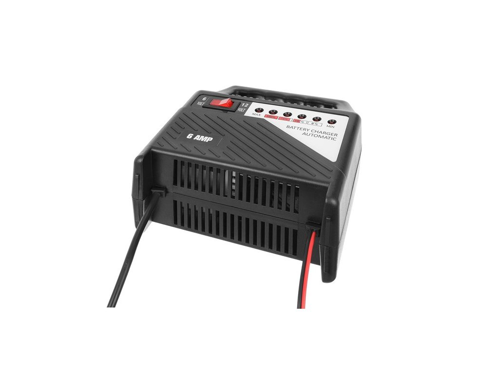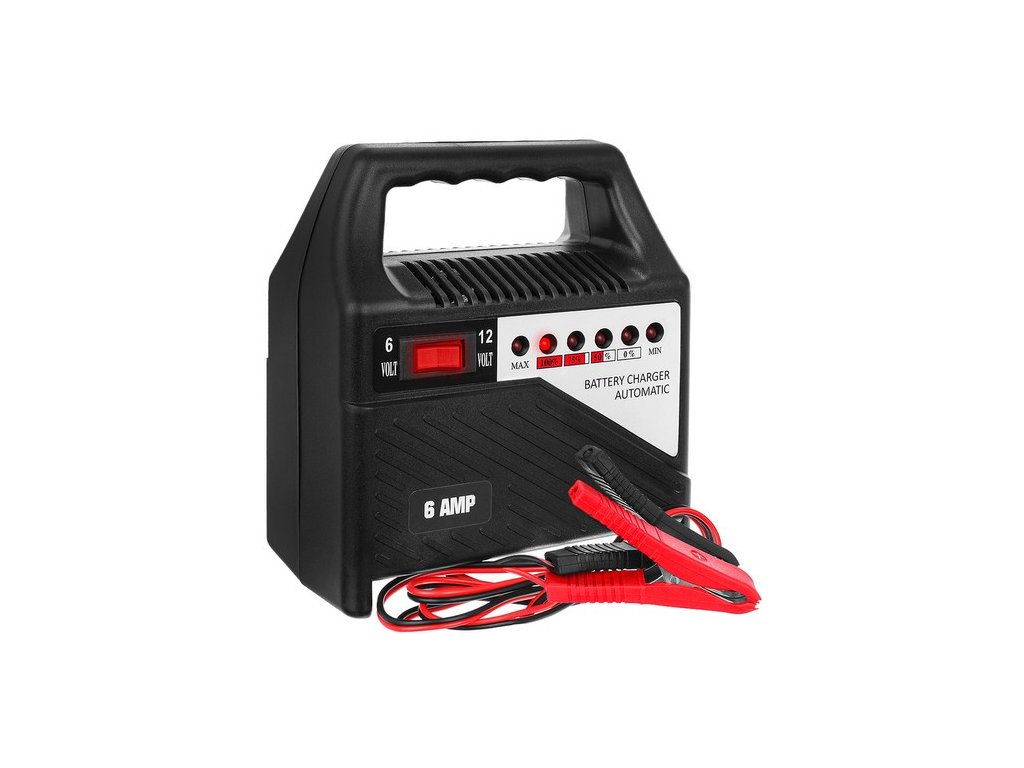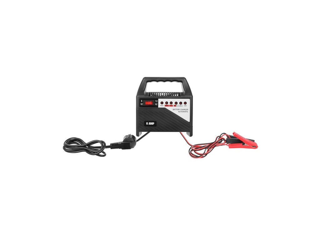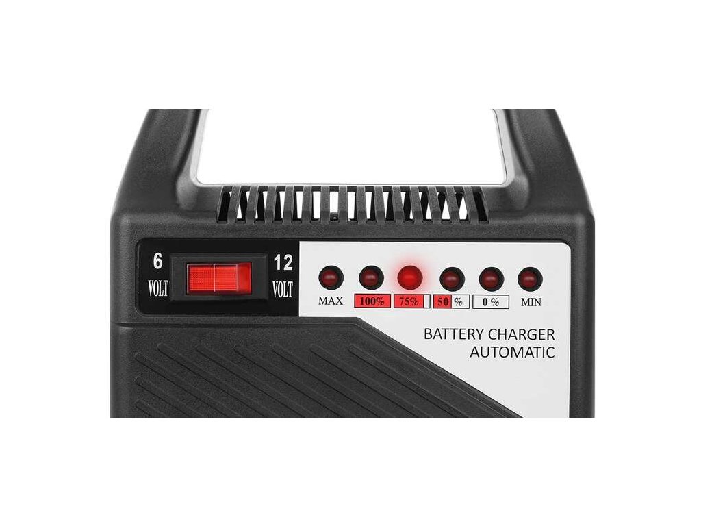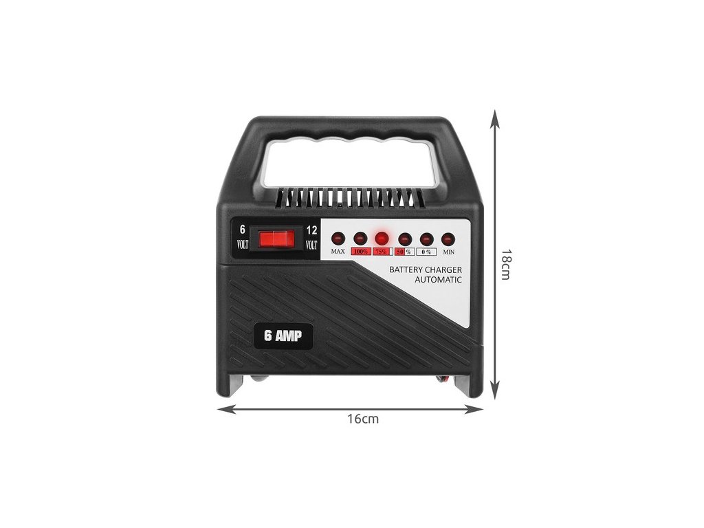 - 6V a 12V - zařízení má vypínač, díky kterému si před nabitím baterie můžeme zvolit 6V nebo 12V dle našich potřeb. Snadno nabije oblíbené autobaterie, motocykly a mnoho dalších baterií. je extrémně efektivní, efektivní a spotřebovává málo elektřiny.