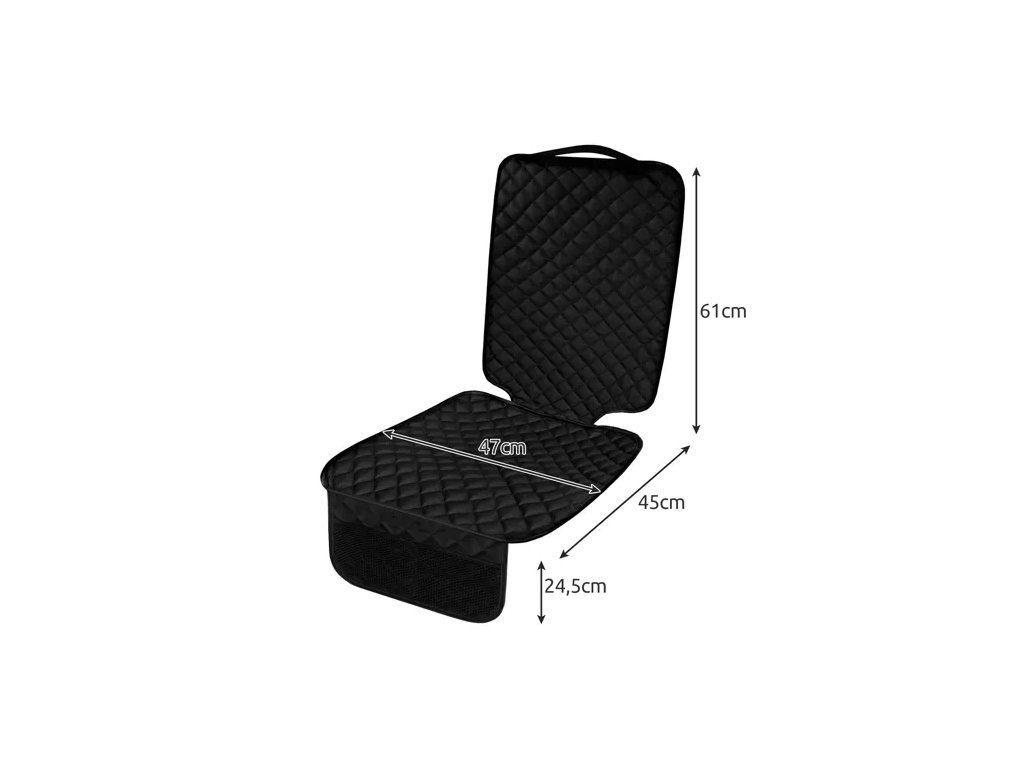 Udržet auto s dětmi v čistotě může být docela problém. Podložka do autosedačky ochrání čalounění sedadel a také výrazně usnadní čištění. Rohož je vyrobena z odolného polyesterového materiálu, který se snadno čistí, protože nečistoty nepronikají do struktury vlákna. Překrytí je také vodotěsnou vrstvou. Ochranná podložka se snadno instaluje - stačí ji rozložit na sedák a připevnit k opěrce hlavy pomocí elastické stuhy přišité k horní části opěradla. Dvě kapsy umístěné ve spodní části karimatky vám umožní uložit potřebné věci. Chránič je vyroben z prošívaného materiálu a lze jej prát v pračce. Podložka je vhodná pro většinu standardních autosedaček a většinu autosedaček, a to jak po směru jízdy, tak proti směru jízdy.