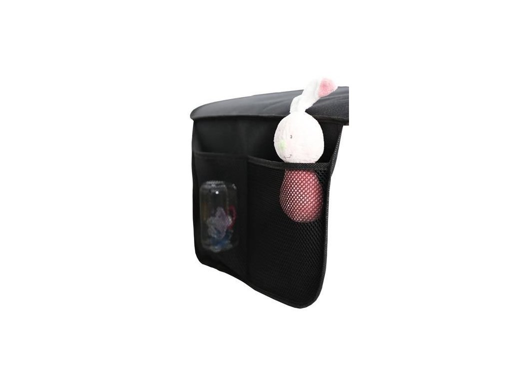- UZAVŘENÝ ORGANIZÁTOR – podložka má 2 další síťované kapsy na předměty, jako jsou hračky, lahve nebo svačiny atd usnadňuje uspořádání místa v autě.