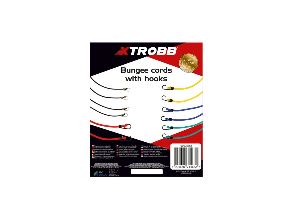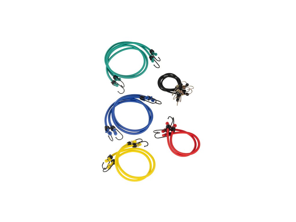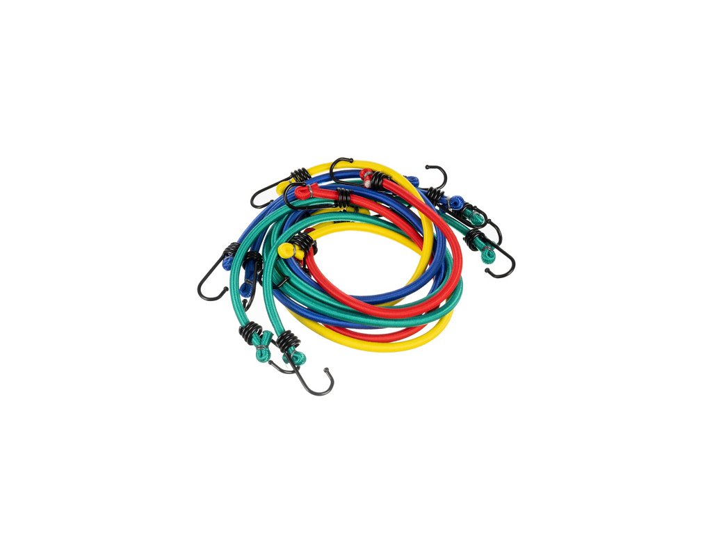 vhodné pro jakékoli zatížení - sada obsahuje elastické šňůry pro upevnění v různých délkách, můžete je umístit do kufru, na kolo nebo na vozík