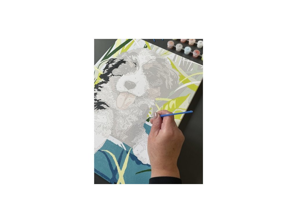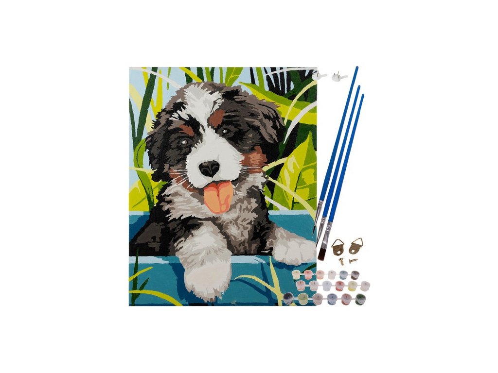 MALOVÁNÍ PODLE ČÍSEL PES / PLÁTNO NA DŘEVĚNÝ RÁM
