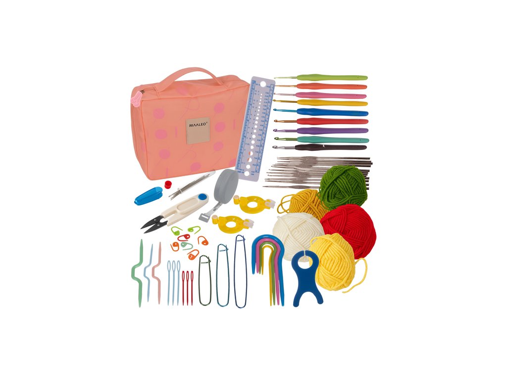 vhodné i pro začátečníky - jedná se o univerzální sadu pro začátečníky i pokročilé uživatele, ve které najdete vše, co potřebujete k nastartování nebo rozvoji své vášně, 21 háčků o velikosti od 0,6 do 6,0 mm, fixy na očka, pletací jehlice, 5 klubíček příze, držáky na očka, nástroje na bambulky, krejčovský metr, řezačky a další příslušenství vám umožní volně realizovat různé projekty – od tenkých krajek po husté tkaniny