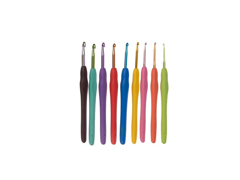 všechny velikosti háčků jsou jasně označeny - každý háček má jasné označení velikosti a ergonomické zploštění, které zabraňuje únavě rukou, takže snadno dosáhnete správného nástroje i při intenzivním pletení
