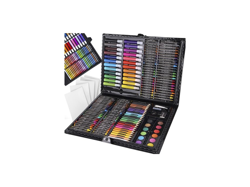 168 PRVKŮ – pomocí obrovského výběru 24 pastelek, 24 fixů, 48 olejových pastelů, 48 svíčkových pastelů, 12 akvarelových barev, ořezávátko, lepidlo, korektor, tužka, guma, listy papíru A4 snadno vytvoříme ta nejnáročnější, nejkreativnější a nejoriginálnější díla .