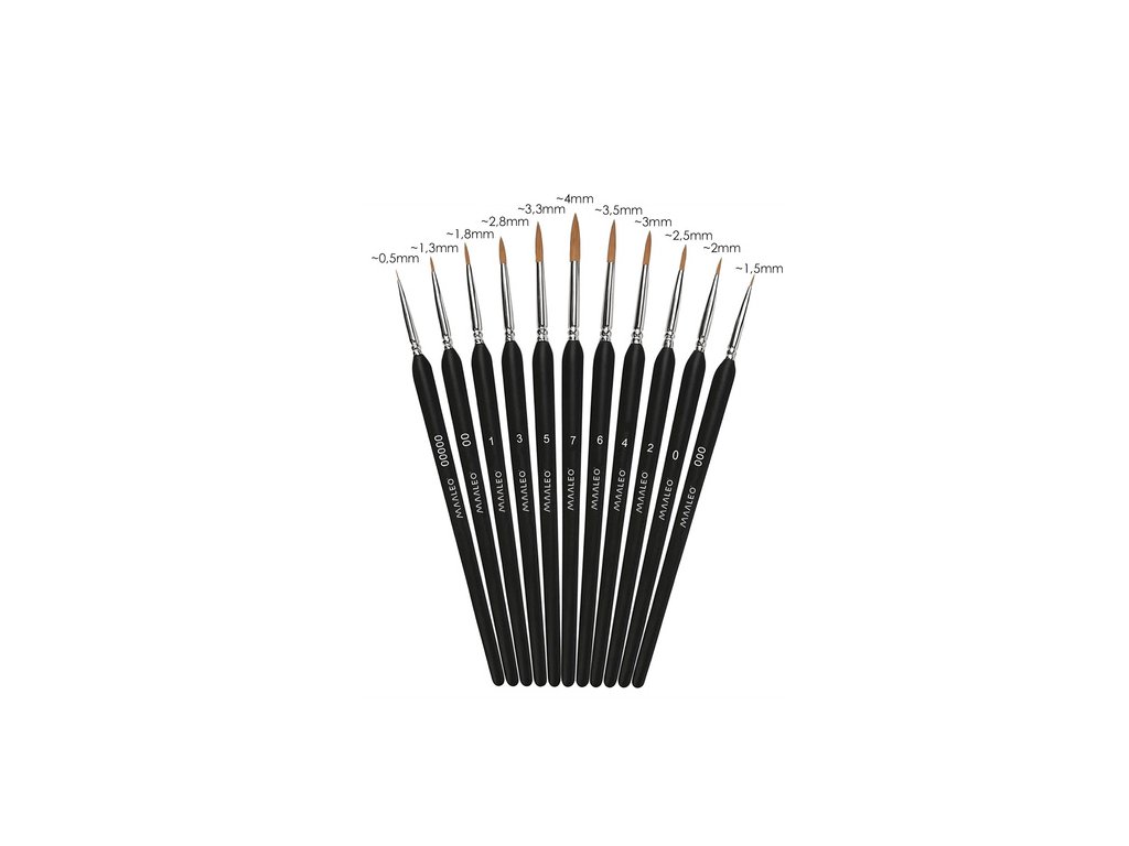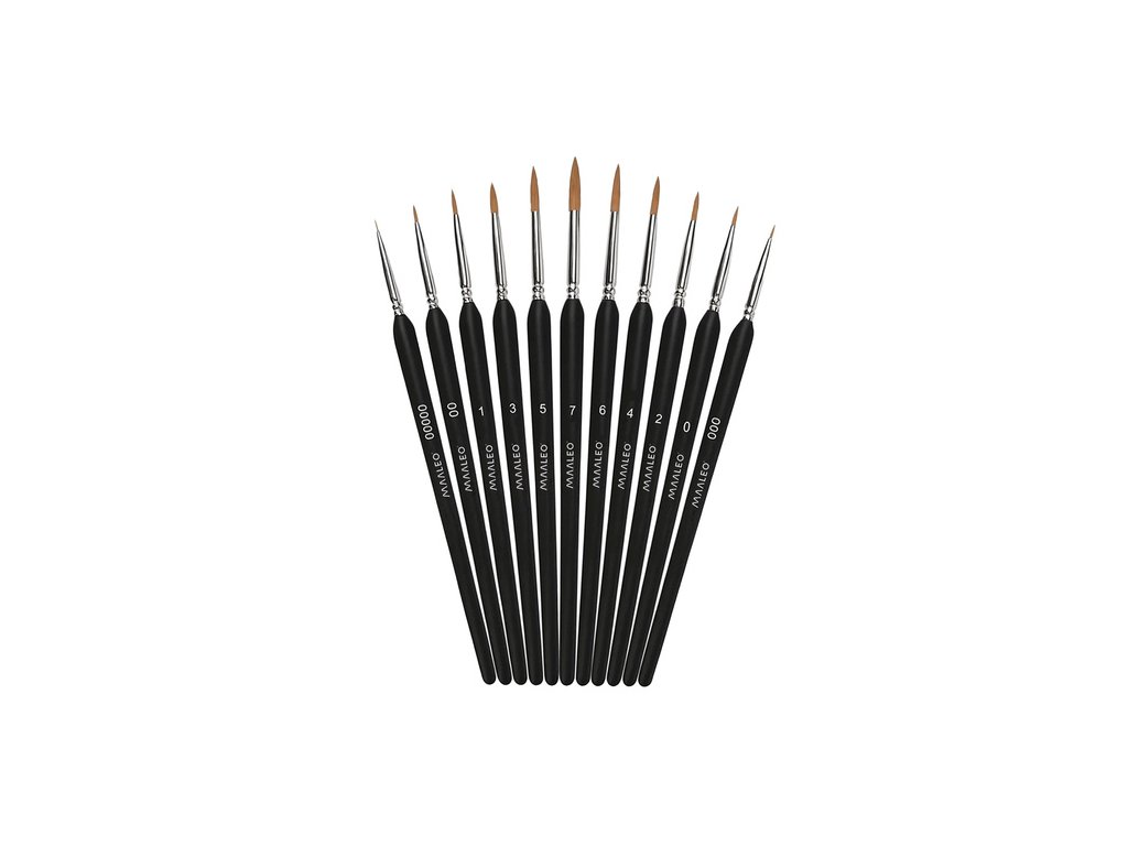 sada obsahuje až 11 štětců - ve velikostech od 00000 do 7, což umožňuje plná kontrola nad detaily a přesné stínování i těch nejmenších prvků