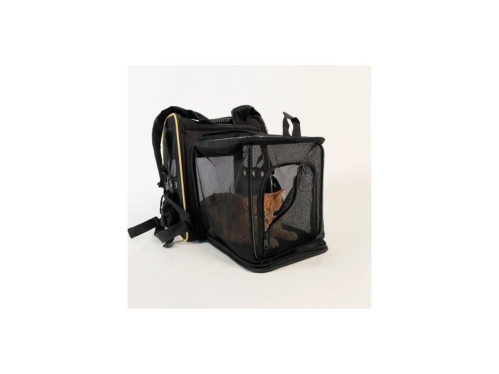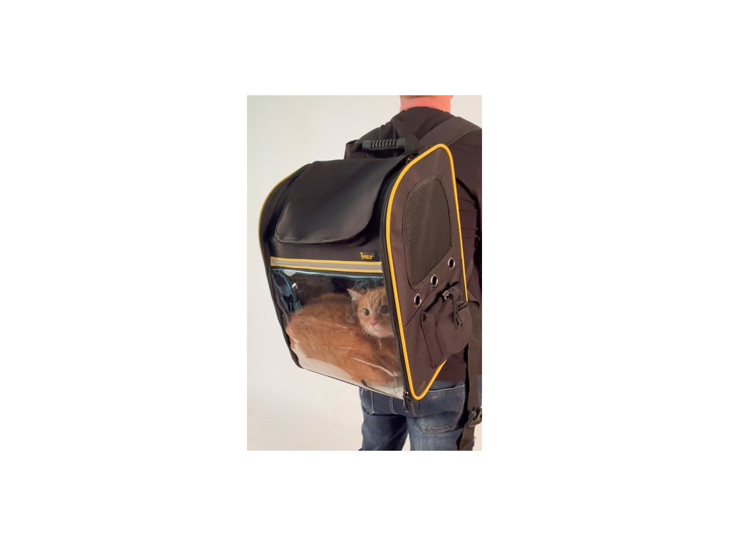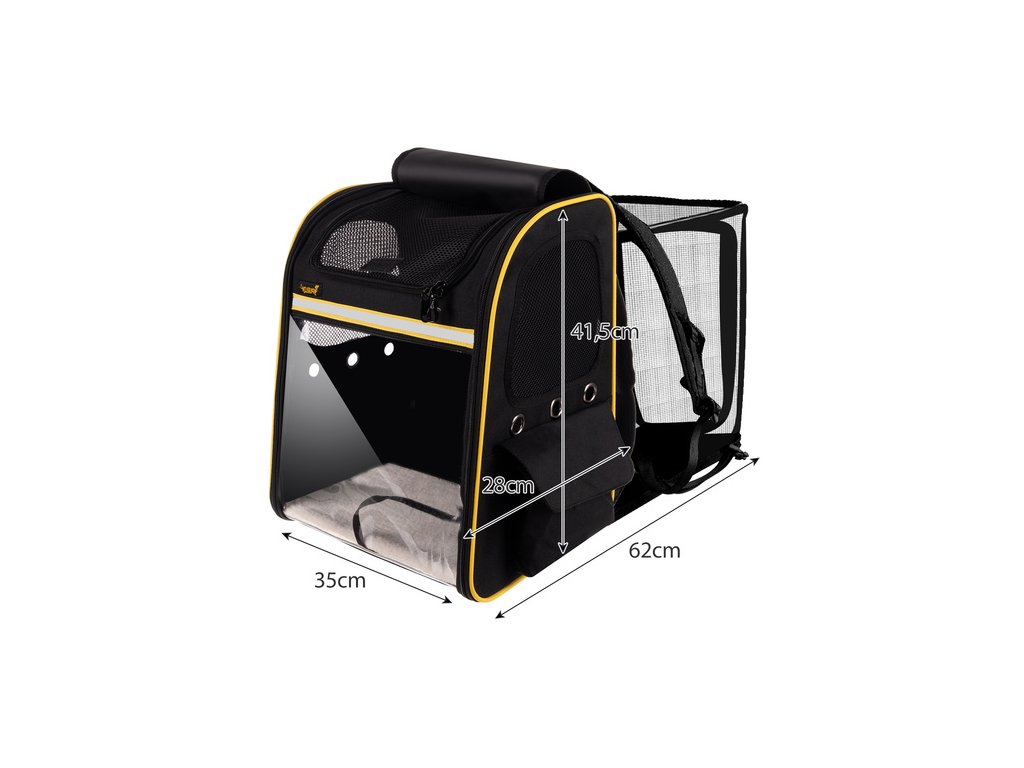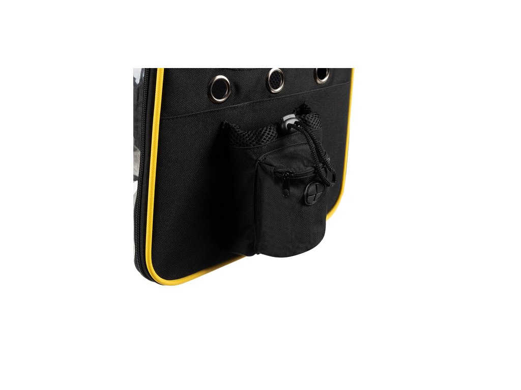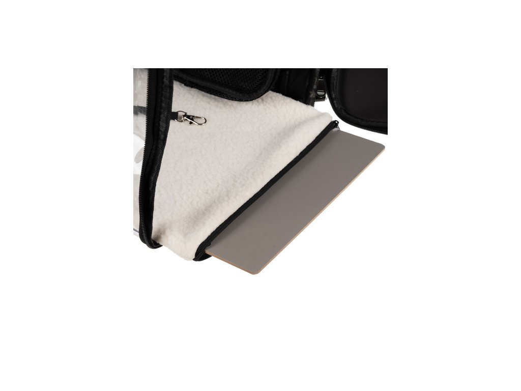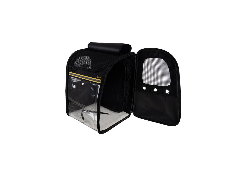 - VYZTUŽENÁ - taška je vyrobena z pevného materiálu, který je po stranách poměrně měkký a stabilní, a má dodatečné zpevnění na spodní i horní straně měkký vložka . Přední strana batohu je z průhledné silné fólie. Domácí mazlíček tak může pozorovat, co se děje venku, a během přepravy necítí žádné nepohodlí.