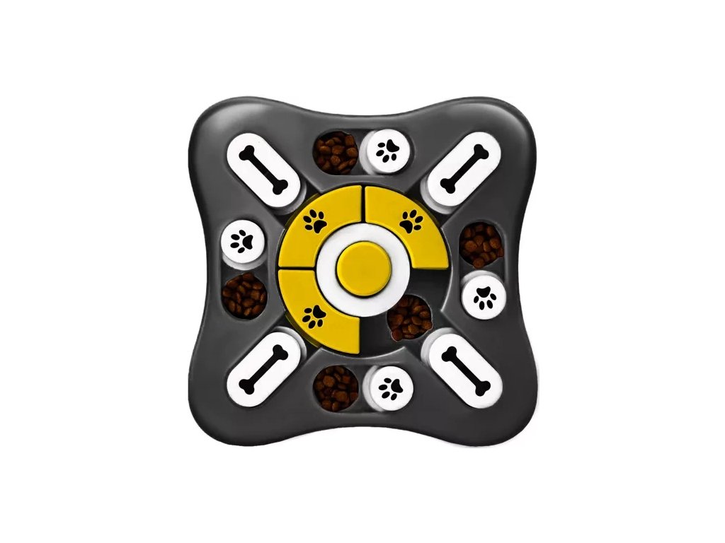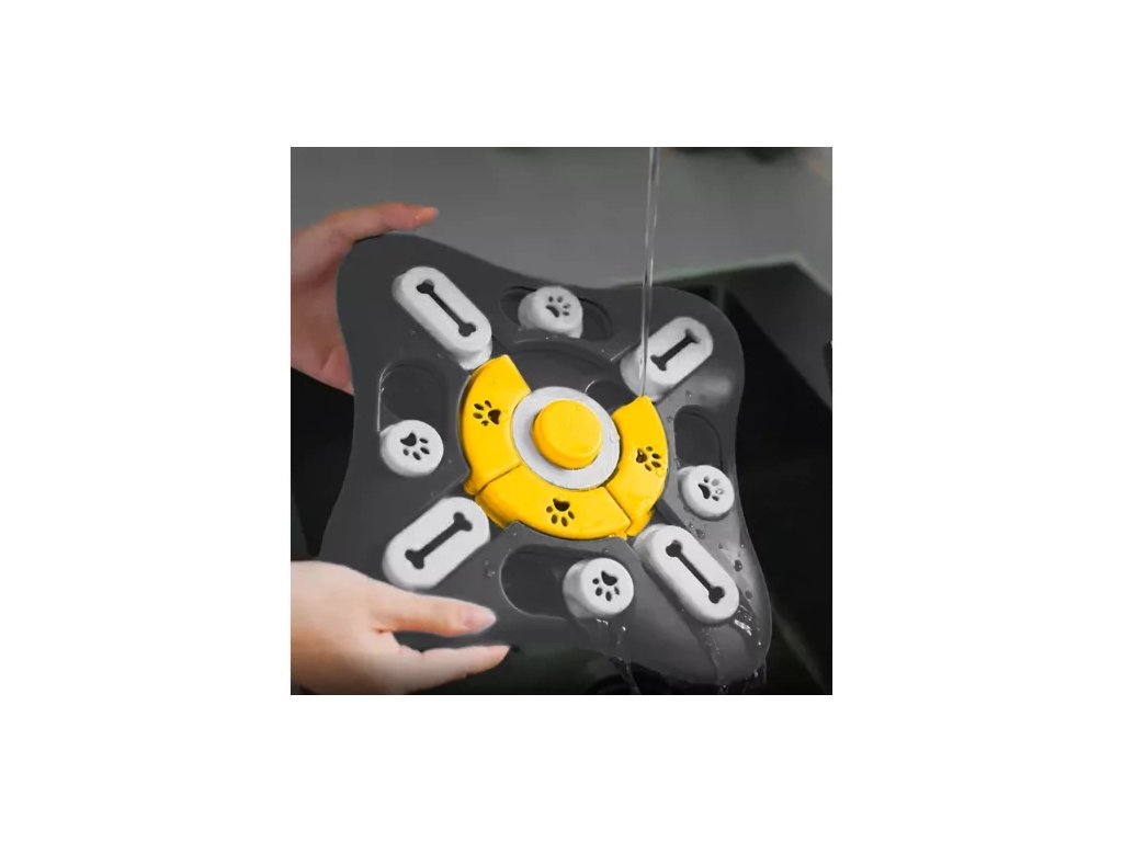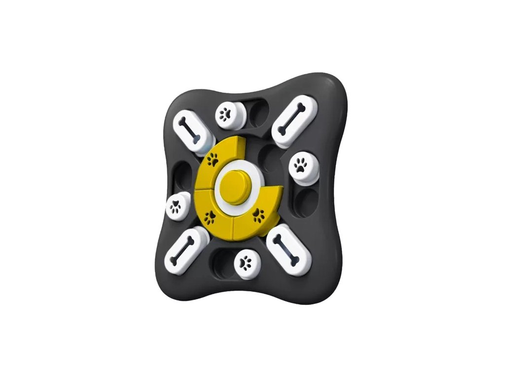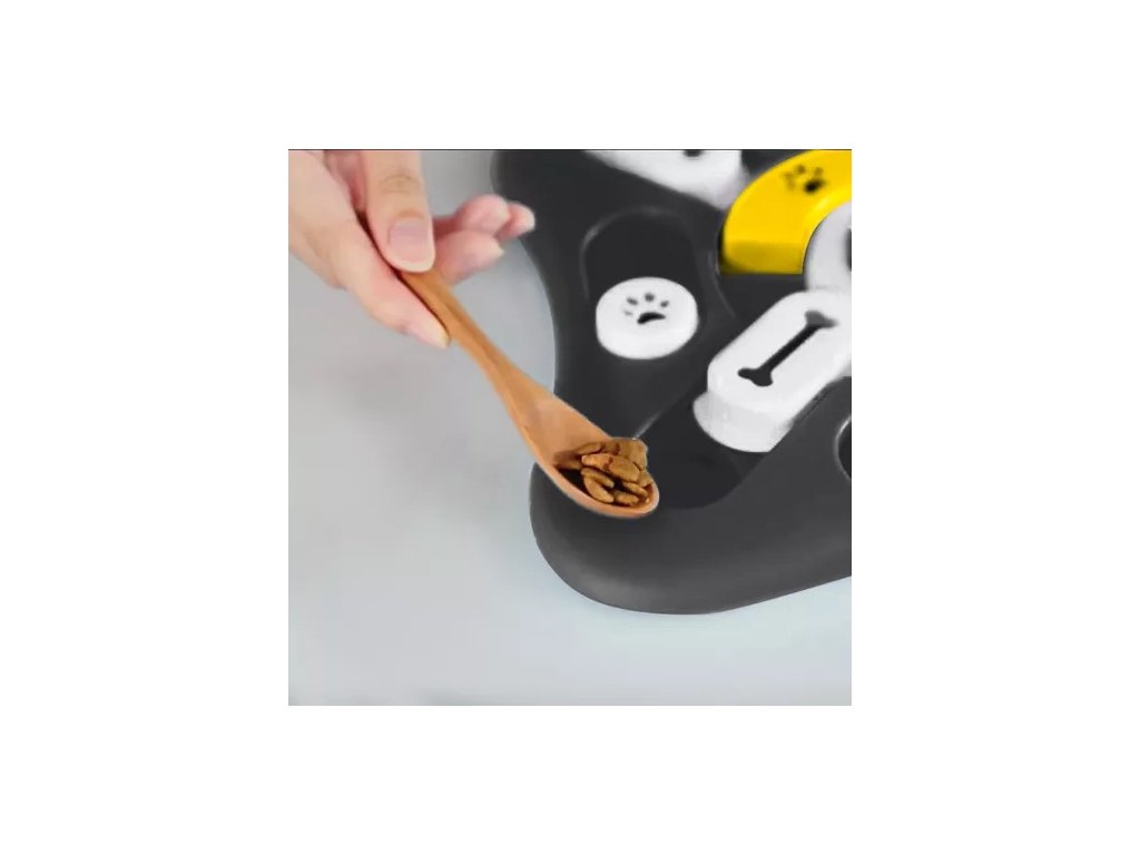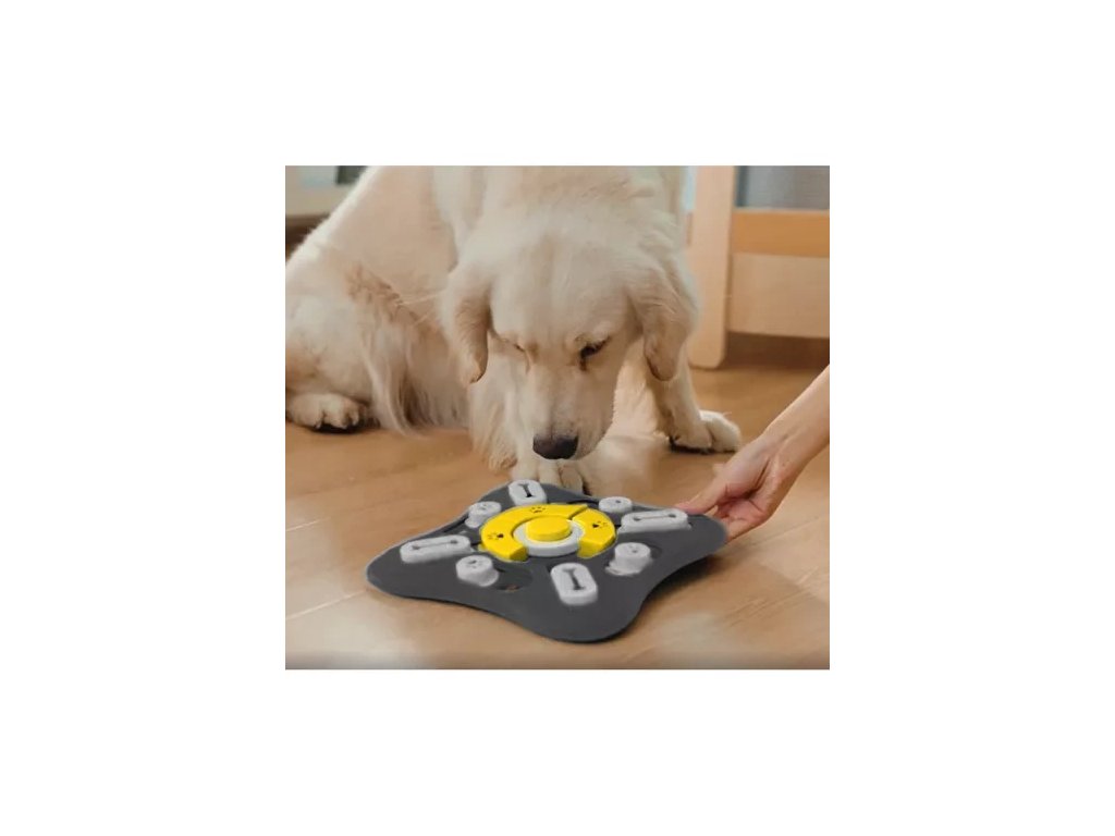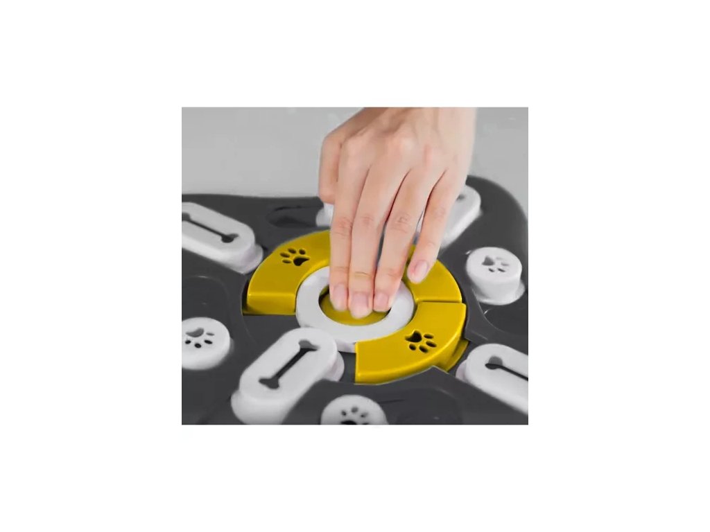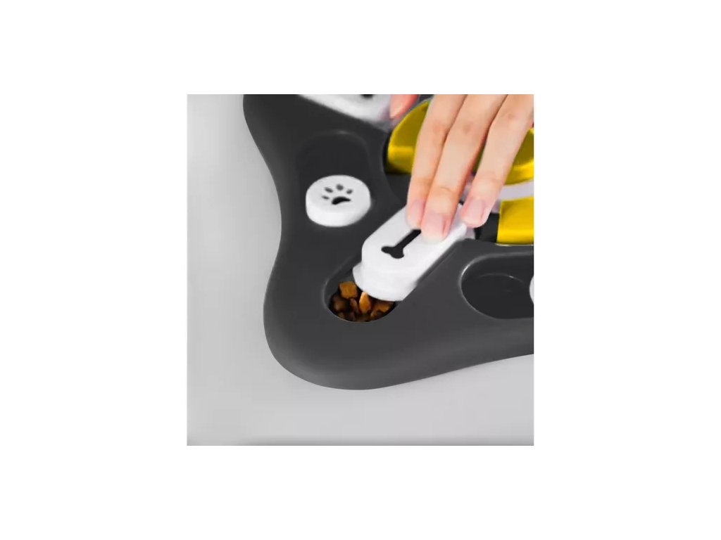 - D VELKÝ POČET DÍLŮ - navrženo speciálně tak, aby měl pes čas si hrát, velké množství přihrádek přiměje psa objevit svačiny v každé přihrádce. Prostřední puzzle se otáčí o 360 stupňů a tlačítko vydává pěkný zvuk.