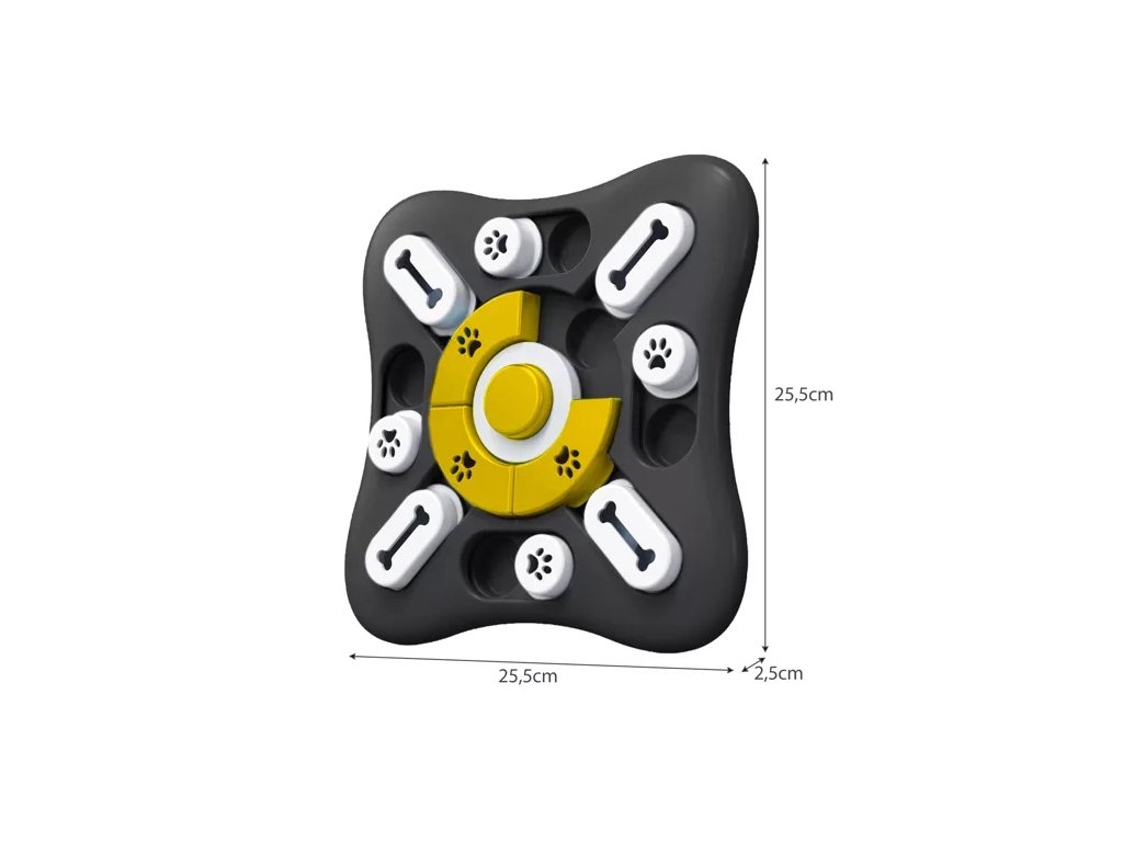 - SPECIFIKACE - barva: černá, žlutá, bílá; materiál: PP, rozměry nádoby na pamlsky: 3 x 1,5 cm; rozměry: 25,5 x 25,5 x 2,5 cm; hmotnost: 330 g; hmotnost balení: 420 g.