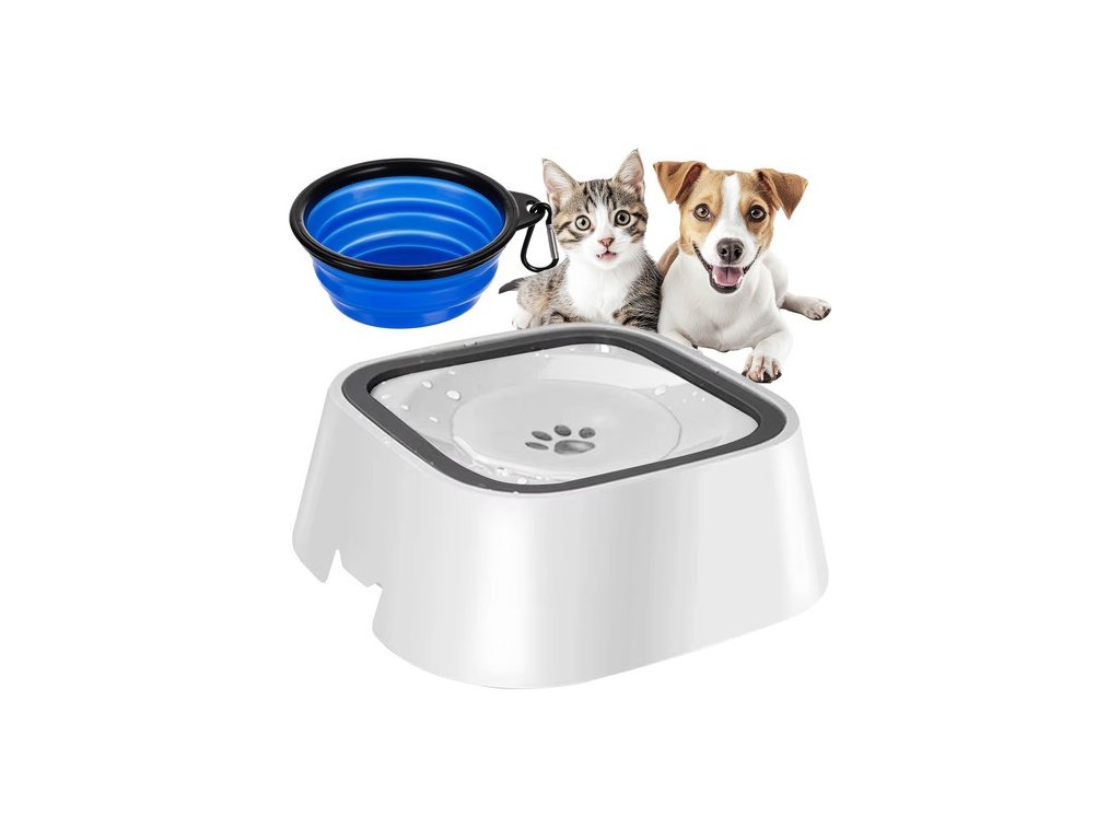 Miska pro psa nebo kočku 1,5l - napáječka s funkcí proti stříkání a dárek!
