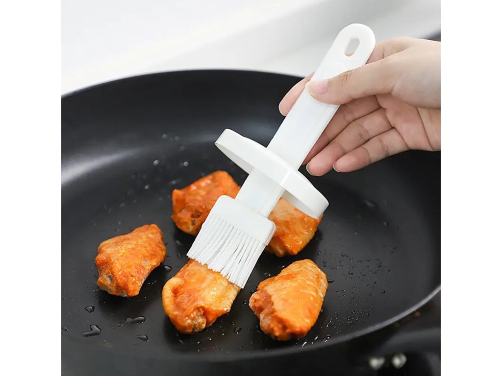 Kompaktní nádoba se silikonovým štětečkem. Přípravek rozhodně usnadňuje rovnoměrné roztírání olejů a marinád na pokrmy. Nádoba umožňuje přesné dávkování bez rizika znečištění povrchu pracovní desky. Štěteček je vyroben z potravinářského silikonu bez zápachu.