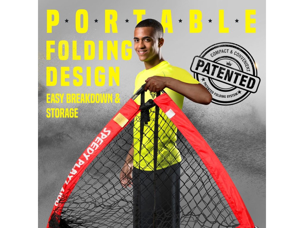 Skládací branka na fotbal 2M Quick Fold Goal značky Net Playz je vhodná pro trénink doma i pro sportovní kluby. Konstrukce je vytvořená ze sklolaminátových tyčí s polyesterovou sítí a její složení je velice jednoduché a rychlé. Skládací branka má rozměry 195 x 110 x 105 cm (šířka x výška x hloubka) a hmotnost přibližně 2 kg. Součástí jsou také čtyři kovové U kotvy pro upevnění branky do země. Po složení branku lehce přenesete pomocí přiloženého vaku. - materiál: polyester, sklolaminát - rozměry branky: 195 x 110 x 105 cm (Š x V x H) - hmotnost branky: cca 2 kg - rozměry balení: 96 x 20 x 9 cm - hmotnost balení: cca 2,5 kg - jednoduchá montáž - 4 kovové kotvy do země - součástí praktický vakDoplňkové parametry