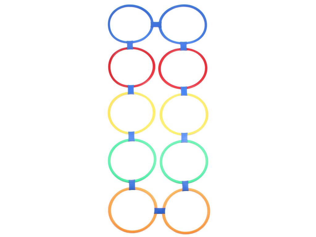 Merco Agility Circles je sada deseti proskakovacích kruhů pro kondiční přípravu sportovců i pro pohybové aktivity dětí ve školách a školkách. Barevnější a především variabilnější variantu agility žebříku tvoří 10 kruhů z měkkého plastu a deset odolných plastových spojek, s jejichž pomocí si vytvoříte trať přesně podle svých potřeb a požadované obtížnosti. Proskakovací obruče Merco Agility Circles jsou vyrobené z lehkého a příjemně měkkého polyetylenu, jejich vnější průměr je 37 cm, šířka 2 cm a tloušťka 0,6 cm. Jeden agility kruh Merco Agility Circles váží 0,05 kg a celý set pak 0,78 kg včetně síťované tašky s rychlým stahováním pro snadnou a pohodlnou přepravu a uskladnění po cvičení.Doplňkové parametry
