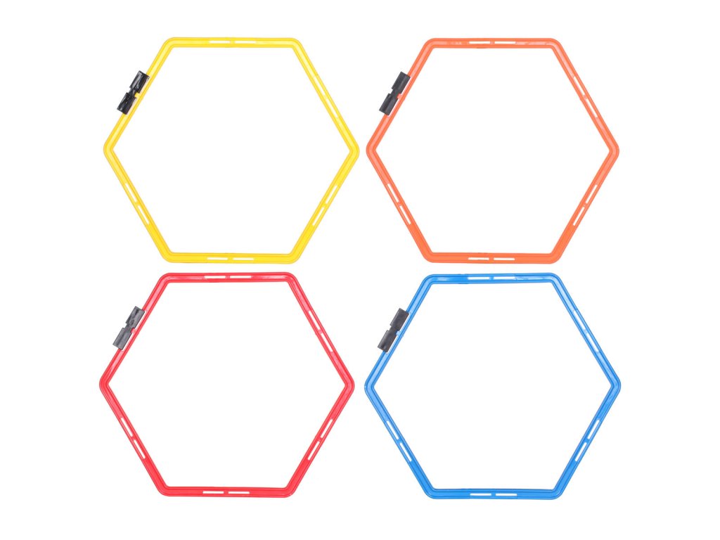 Merco Agility Hex, proskakovací šestiúhelník, o délce strany 28 cm, slouží ke kondiční přípravě sportovců a to stejně jako různé agility žebříky a proskakovačky. Zásadní rozdíl mezi těmito produkty je ale ve variabilitě. Zatím co pevné žebříky mají dané parametry, u proskakovacího šestiúhelníku Merco Agility Hex si můžete koupí libovolného počtu kusů a pomocí spojek, které jsou součástí každého dílu, vytvořit trať přesně podle svých potřeb a požadované obtížnosti. Merco Agility Hex Vám umožní vytvářet nekonečné množství různých variant a obtížností při tréninku rychlosti, rovnováhy a kordinace bez ohledu na Vaše sportovní zaměření. Hmotnost jednoho kusu je 210 g.Doplňkové parametry