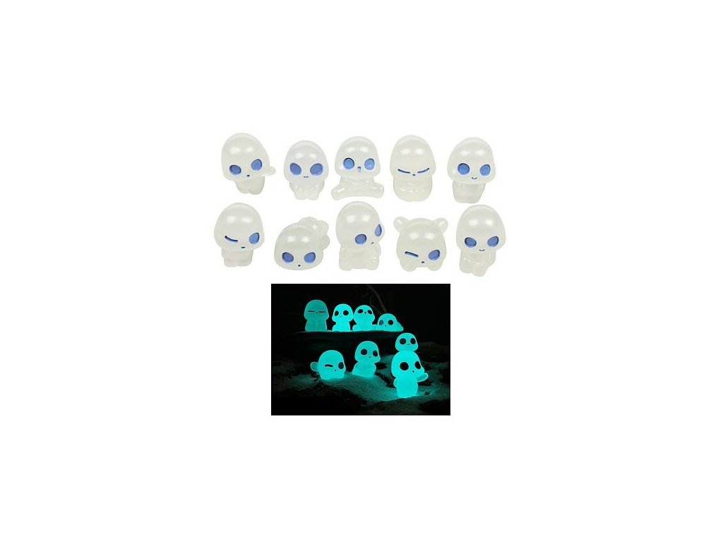 Dekorativní světélkující ornamenty v mimozemské podobě rozzáří nejen váš byt, ale i zahradu. Roztomilý malý panáčci, kteří jsou ideální jako dekorace do květináčů, na zahradu, nebo jako přidaná hodnota do dárkového balení, která rozhodně potěší každého. Jedno balení obsahuje 10 ks svítících emzáků nastavených v různých pozicích. Na výběr máte buď svítivou zelenou nebo modrou barvu. Ale pozor tyto bytosti z jiných světů se rozzáří, až slunce zapadne za obzor a přijde noc. Aby efekt svícení byl maximální, nechte panáčky nasvítit třeba baterkou a poté dejte do temného prostředí. Upozornění: Produkt ukládejte mimo dosah dětí! Hrozí spolknutí a udušení! materiál: pryskyřice velikost figurky: cca 2,5 cm hmotnost figurky: 6 g obsah balení: 10 ksDoplňkové parametry