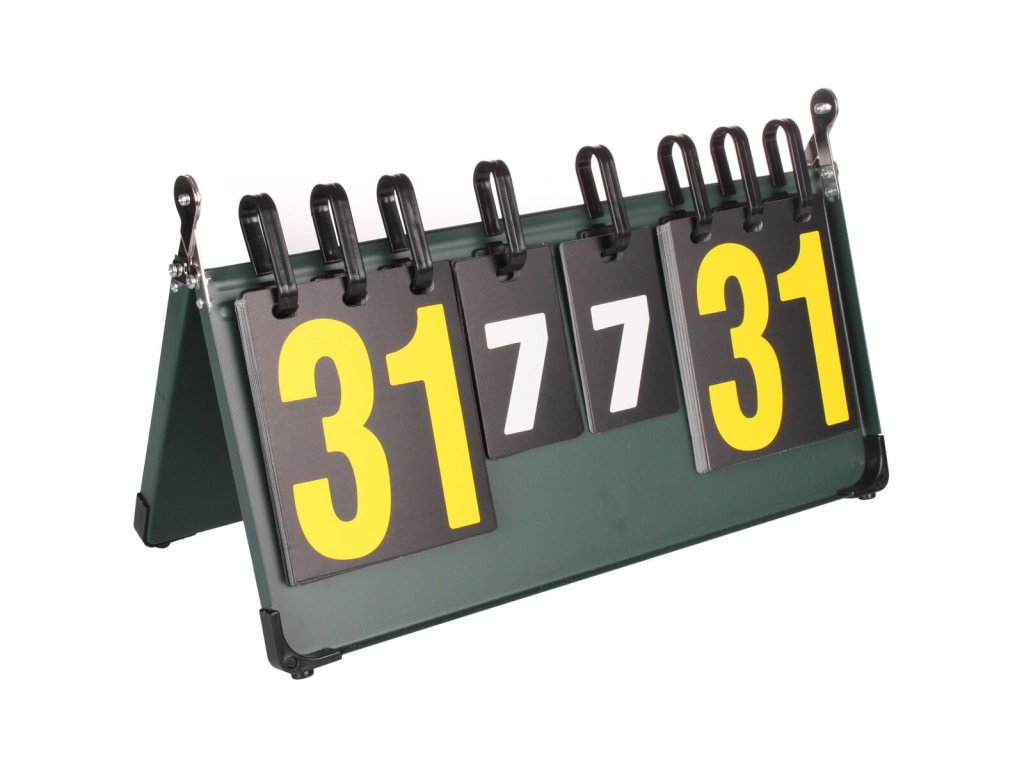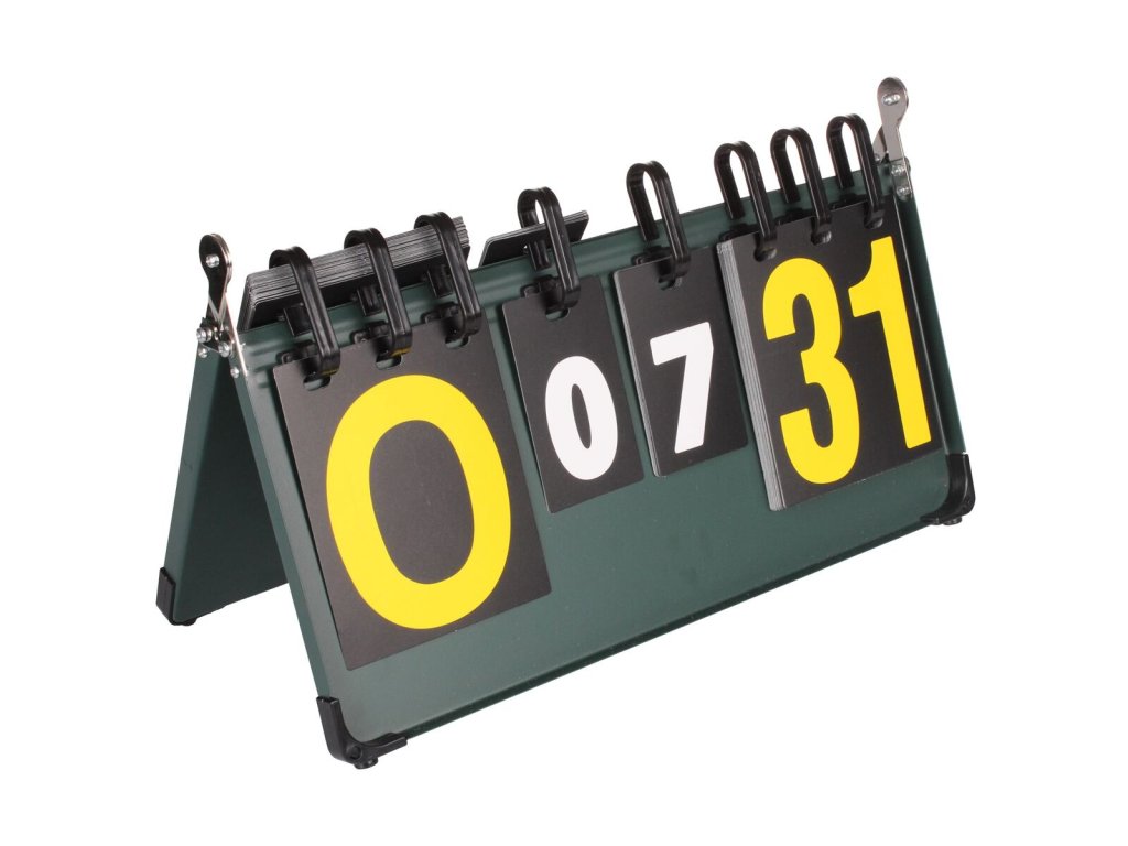 Chcete dodat nový rozměr Vašim zápasům? Nebo se jen konečně nehádat, jaké je právě skóre? Všem, pro které je dostačující rozpětí bodů od 0 do 30 a rozpětí setů od 0 do 7 doporučujeme lehký, snadno přenosný a cenově dostupný oboustranný ukazatel skóre Merco Allscore II. Rozkládací / skládací ukazatel skóre Merco Allscore II tvoří samonosná kovová konstrukce, očka z trvanlivého plastu a odolné plastové listy s číslicemi. Bílé číslice na kontrastním zeleném podkladu mají dostatečnou velikost (6,5 cm a 10,5 cm), aby byla dobře viditelná i na větší vzdálenost. Manuální ukazatel skóre Merco Allscore II má hmotnost 1,25 kg, rozložený má rozměr (Š x V x H) 45,5 x 21 x 18 cm a ve složeném stavu má rozměr (Š x V x H) 45,5 x 23 x 2,5 cm. Ukazatel skóre Merco Allscore II Vám zaručeně a s přehledem pomůže uhlídat průběh i konečný stav zápasu.Doplňkové parametry