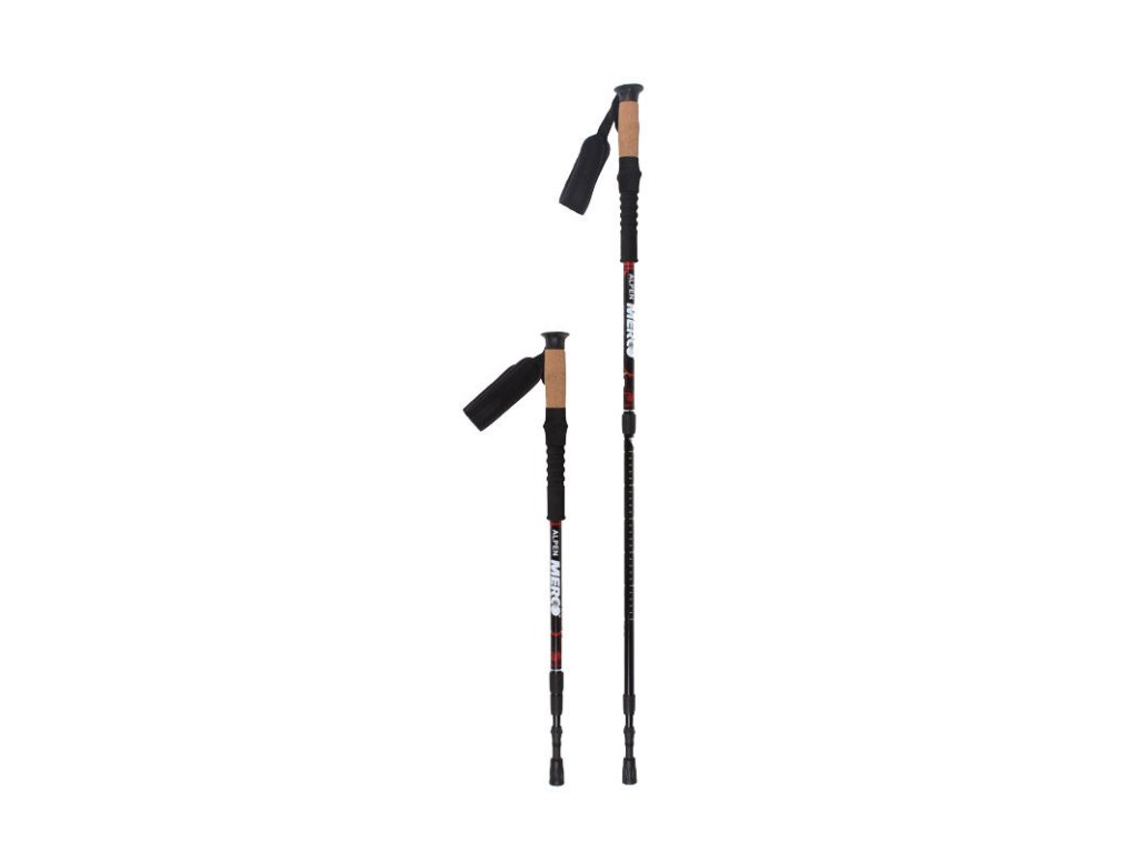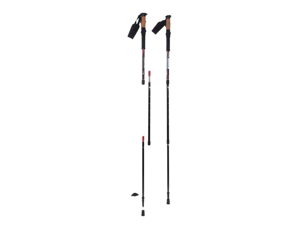 Teleskopické turistické hůlky s neoprenovým popruhem, korkovou rukojetí a neoprenovým rozšířením rukojetí. Tyto trekové hole jsou vyrobeny z uhlíkové a hliníkové slitiny a skládají se ze tří částí. Mají karbidový hrot s odnímatelným kloboučkem a botičkou a jsou nastavitelné. Hole mohou být až 135 cm dlouhé, ve složeném stavu mají délku 66 cm. Hmotnost holí je 480 g.Doplňkové parametry