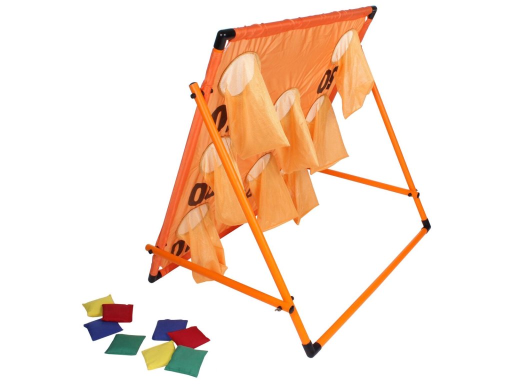 Merco Bean Target je zábavná hra pro celou rodinu, která je založená na podobném principu jako je populární americký Cornhole. Celá sada obsahuje skládací terč vyrobený z polyesteru a lehké PVC konstrukce a barevnými sáčky, které jsou naplněné fazolkami či kuličkami. Hru můžete hrát sami a trénovat tak svou přesnost spodního hodu, nebo hrajte s přáteli a vytvořte si svou soutěž o to, kdo získá nejvíc bodů. Terč má po jednoduchém složení rozměry přibližně 90 x 93 x 72 cm a hmotnost necelých 1,5 kg. Díky tomu jej jednoduše kamkoliv přenesete. Pokud hledáte novou hru do školy, pro dětské kroužky nebo pro svou rodinu, Bean Target je to pravé! Upozornění: Není vhodné pro děti mladší 3 let. Vždy házejte bean bag spodem na terč a ne plnou silou horním švihem, jinak časem hrozí poškození terče. - sada: 1x terč + 4 páry bean bag sáčků - materiál: polyester, PVC, bavlna - terč: 90 x 93 x 72 cm (výška x šířka x hloubka) - průměr otvoru: 13 cm - bean bag: 9,5 x 9,5 cm, 80 g - rozměry balení: 113 x 13 x 12 cm - hmotnost sady: cca 2,3 kgDoplňkové parametry