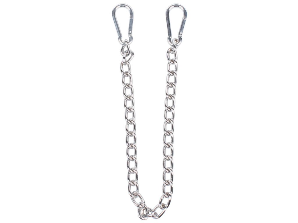 Náhradní řetěz s karabinami Merco Chain 66 využijete doma či na zahradě pro houpací sítě, boxovací pytle, houpačky, závěsná křesla apod. Ocelový řetěz má délku přibližně 56 cm, délka karabin je 7 cm a nosnost řetězu je do 120 kg. Hmotnost celého balení je 320 g. Uvedená cena platí pro 1 ks. - balení: 2 karabiny + řetěz - materiál: ocel - délka řetězu 56 cm - délka karabiny: 7 cm - nosnost 120 kg - hmotnost balení: cca 320 g - pro houpací sítě, boxovací pytle, houpačky, závěsná křesla apod.Doplňkové parametry