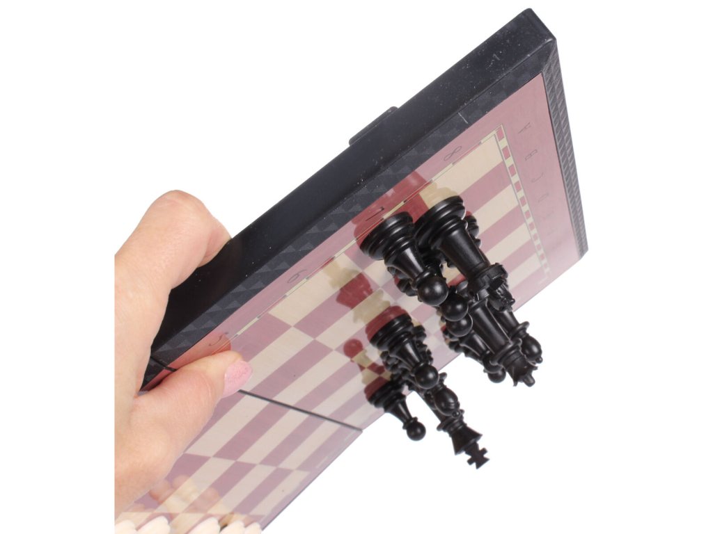 Ať už patříte mezi úplné začátečníky či profíky ve světě šachů, se sadou Merco Chess 33 neuděláte krok vedle! Tato sada se skládací magnetickou deskou je ideální pro domácí hraní i na cesty! Samotná deska má rozměry 33 x 33 x 1,5 cm, výška plastových figurek je od 3,5 do 6,5 cm. Po složení má set rozměry 33 x 16,5 x 3 cm a hmotnost cca 0,69 kg. Díky tomu můžete hrát a zlepšovat se kdekoliv a kdekoliv! - materiál: plast - deska: 33 x 33 x 1,5 cm - ve složeném stavu: 33 x 16,5 x 3 cm - hladký povrch šachovnice a precizně tvarované figurky zajišťují příjemný herní zážitek - pro začátečníky i pokročilé – vhodné pro děti, dospělé i seniory; skvělý nástroj pro rozvoj logiky a strategického myšlení - na doma, do školy, do práce, na dovolenou nebo jako dárek Není vhodné pro děti mladší 3 let! Nenechávejte bez dozoru dospělé, zodpovědné osoby, hrozí udušení malými částmi!Doplňkové parametry