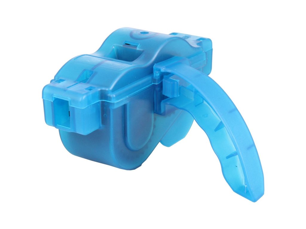 Čištění řetězu je nezbytnou součástí údržby kola. Jeho pravidelným čištěním prodloužíte životnost celého vašeho hnacího ústrojí a může zlepšit i řazení. Díky čističi Merco Cleaner nemusíte řetěz ani sundávat a čištění je díky tomu mnohem jednodušší a rychlejší. Rozměry plastového čističe jsou 13 x 12 x 7 cm a jeho hmotnost je 98 g. Instrukce: - Pro otevření čističe nezapomeňte nejdříve sundat držadlo. - Čistič připevněte ke spodní části řetězu a ujistěte se, že je řetěz dobře usazený v kartáčích. - Nalijte čistící kapalinu a točte řetězem dokud není úplně čistý. - Řetěz nechte uschnout a poté jej nezapomeňte promazat správným olejem. (kapalina ani olej nejsou součástí balení)Doplňkové parametry