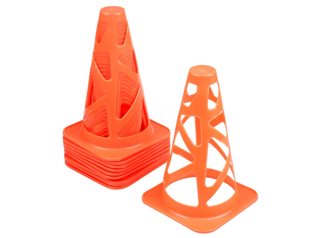 Merco Collapsible Cones je set deseti kuželů pro váš trénink doma, ve škole i sportovním klubu. Tyto kužely vyrobené z měkkého PVC jsou unikátní svým designem, díky kterému vydrží i hrubší zacházení a vrátí se vždy do svého původního tvaru, například pokud na kužel omylem šlápnete. Kužel je vysoký 22,5 cm a jeho hmotnost je pouhých 60 g. - set: 10 ks - materiál: měkké PVC - výška: 22,5 cm - základna: 14,5 x 14,5 cm - hmotnost: 60 gDoplňkové parametry