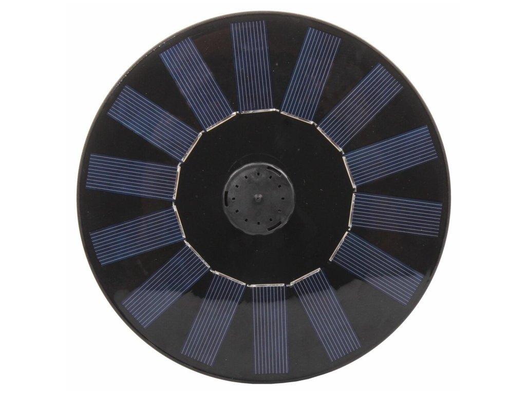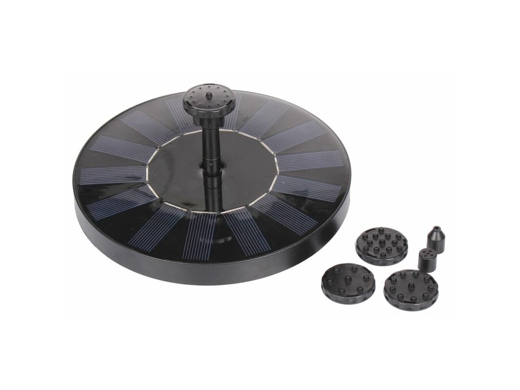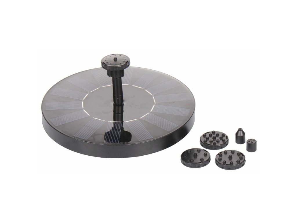 Pokud si chcete trochu zpestřit své zahradní jezírko, pořiďte si fontánku se solárním čerpadlem Courtyard. Tato plovoucí fontánka s průměrem 16 cm (solární panely z monokrystalického křemíku) je dodávaná se šesti různými tryskami se zcela odlišnými efekty stříkání. Upozornění: fontána funguje pouze na slunci, její účinnost závisí na intenzitě slunečního záření. Fontánu používejte vždy pouze ponořenou do vody, jinak může dojít k poškození motoru. Parametry: - výkon solárního panelu: 7V 1.5W - výkon čerpadla: 7V 1.0W - maximální průtok čerpadla: 190 L/H - součástí 6 různých nástavcůDoplňkové parametry
