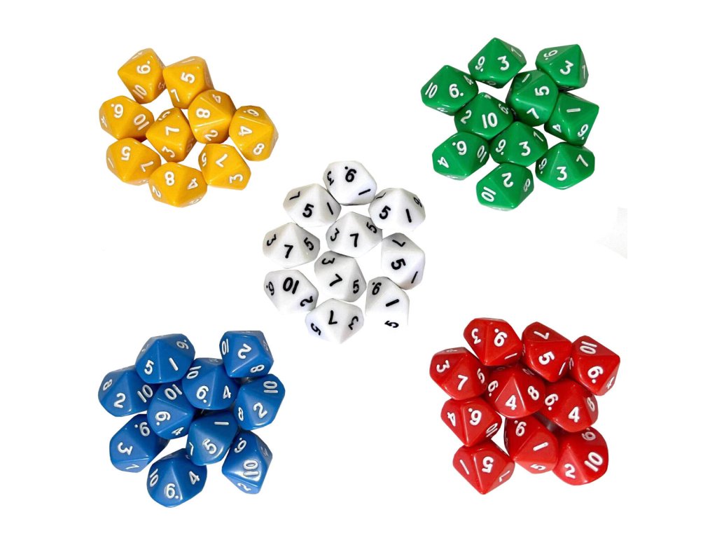 Rozšiřte svou sbírku herního vybavení se sadou Merco Dice Set AC10. Celá sada obsahuje šedesát desetistěnných kostek vyrobených z odolného akrylu se zaoblenými hranami a v šesti různých barvách. Průměr kostky je 20 mm a hmotnost pouhé 4 g. Sada kostek Dice Set AC10 je ideální pro různé karetní a deskové hry pro více hráčů. Ukládejte mimo dosah malých dětí, mohlo by dojít ke spolknutí a udušení. - celkem 60 desetistěnných kostek pro karetní a deskové hry - akryl - označení: 1 - 10 - výška: 20 mm - hmotnost kostky: 4 g - hmotnost balení: cca 170 gDoplňkové parametry