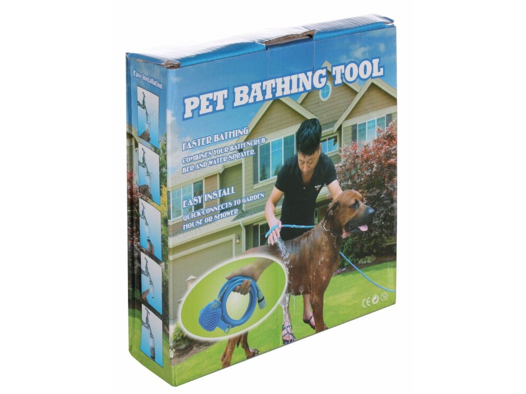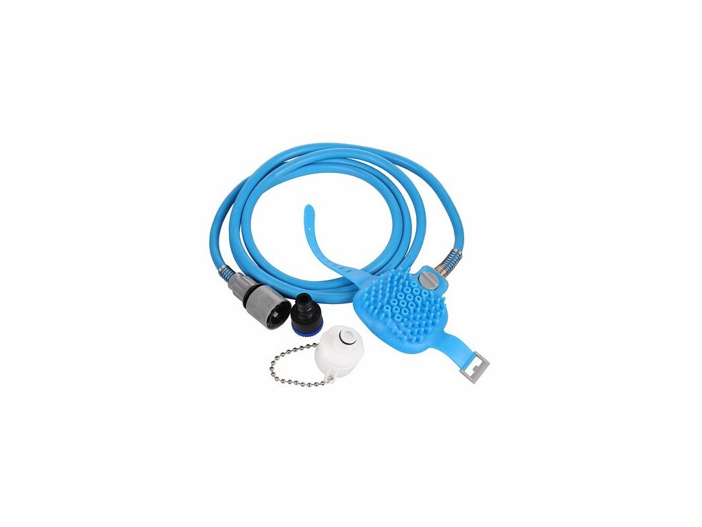 Douche sprcha pro mazlíčky vám pomůže vašeho miláčka udržet čistého a ještě navíc dopřeje vašemu kamarádovi masáž. Sprcha je vyrobená z PVC hadice, silikonového kartáče, spojená ABS plastem a pružinou z nerezové oceli. Celková délka sprchy je 2,5 m. Kartáč jednoduše připevníte na ruku pomocí silikonového opasku. Hadici připojíte k přívodu vody a můžete začít se sprchováním mazlíčka. Hlava kartáče je opatřena pojistkou k regulaci přívodu vody. Součástí balení jsou dvě spojky na různé druhy kohoutků. Už se nebojte špinavého mazlíčka, sprcha Douche je řešení! Parametry: hmotnost: 320 g délka sprchy: 2,5 m materiál: ABS, silikon, PVC, nerezová ocelDoplňkové parametry