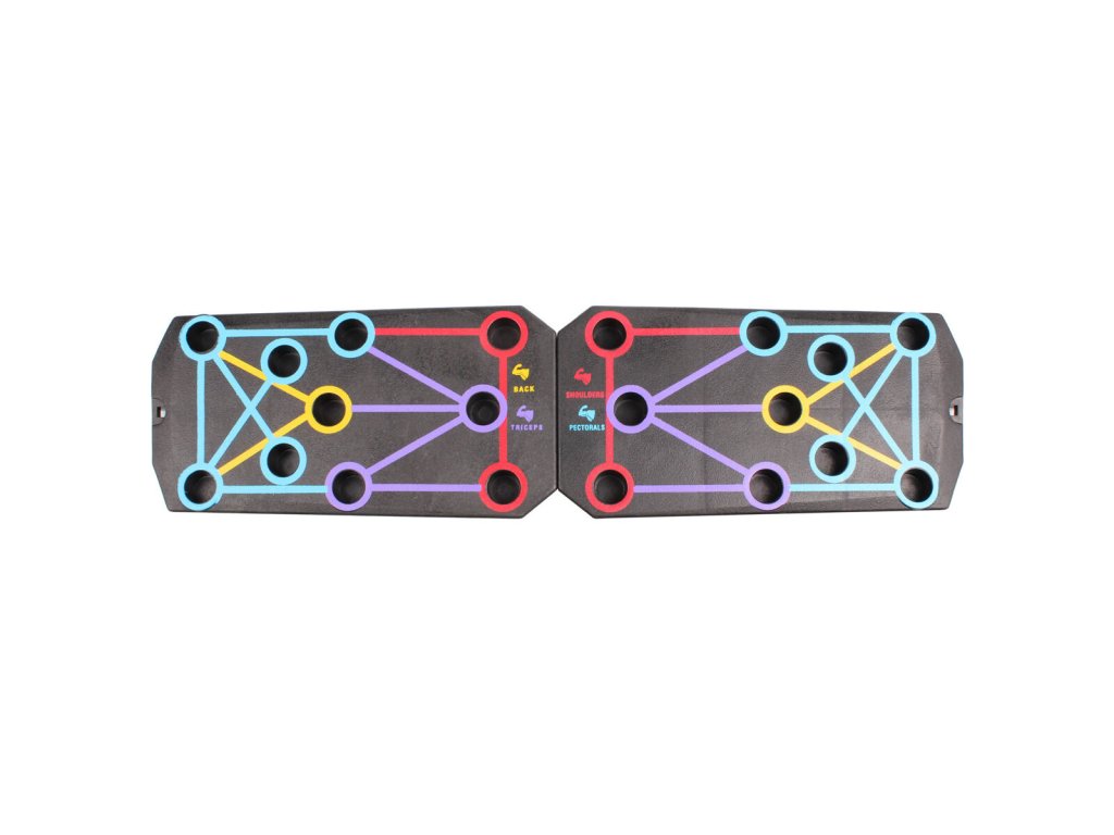 Multifunkční deska na kliky Merco Excellent Classic je určená na posilování zad, tricepsů, ramen a prsních svalů. Stačí jednoduše nastavit přiložené opěrky podle barevně rozlišených poloh na desce a můžete začít cvičit. Skládací deska i opěrky jsou vyrobené z odolného polypropylenu. Tréninková deska Excellent Classic se skládá ze dvou částí, po sestavení má rozměry 62 x 16 x 2 cm a hmotnost přibližně 0,5 kg. Podle barevně odlišených pozic pro madla posilujete oblast, kterou potřebujete. Ideální doplněk pro domácí posilovny. - materiál: PP - rozměry po složení: 62 x 16 x 2 cm - hmotnost: 0,5 kg žlutá - záda fialová - tricepsy červená - ramena modrá - prsní svalyDoplňkové parametry