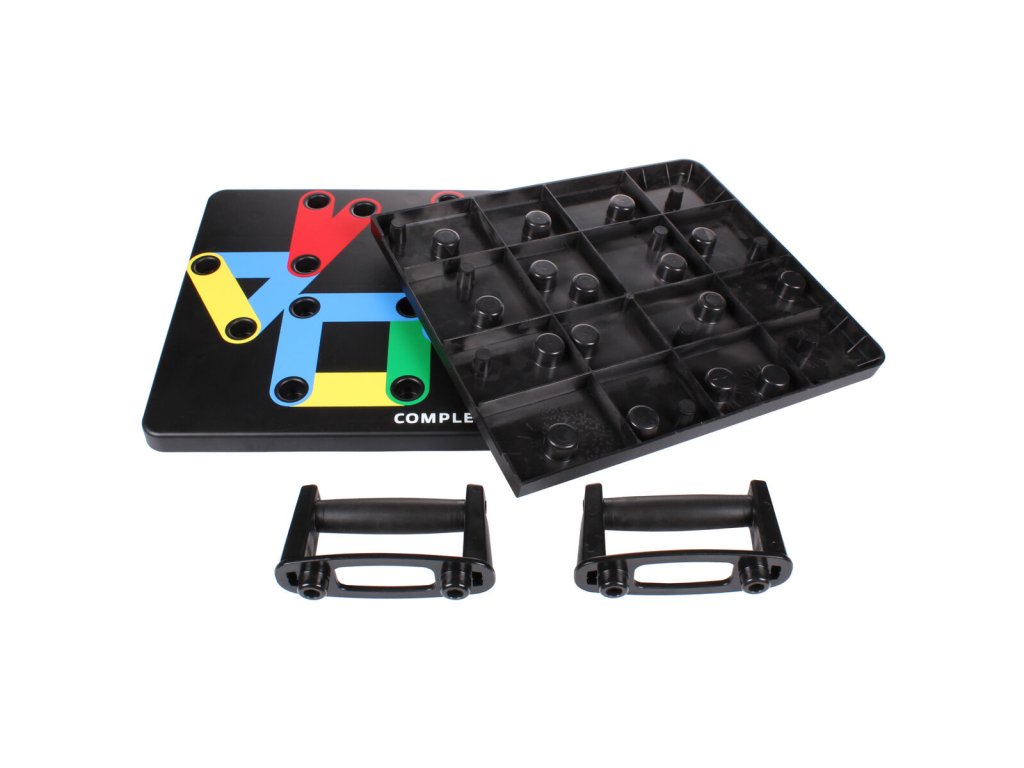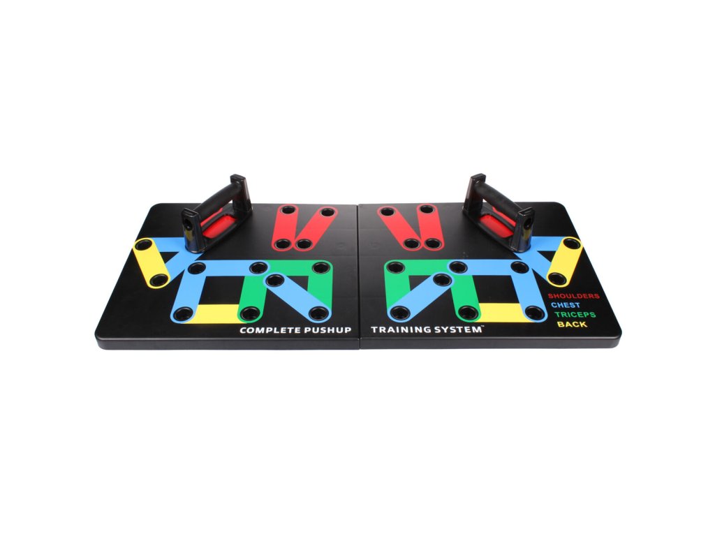 Multifunkční deska na kliky Merco Excellent Splice je určená na cvičení a posílení tricepsů, prsou a zad. Stačí jednoduše nastavit přiložené opěrky podle barevně rozlišených poloh na desce a můžete začít cvičit. Skládací deska i opěrky jsou vyrobené z odolného ABS plastu, opěrky jsou opatřené silikonovými protiskluzovými rukojetěmi. Tréninková deska Excellent Splice se skládá ze dvou částí, po sestavení má rozměry (D x Š x V) 90 x 39 x 3 cm a váží necelých 2,2 kg, rukojeti opěrek jsou široké 13 cm. Deska nabízí 14 nastavení poloh pro cvičení: 4 na ramena (červená barva), 3 na tricepsy (zelená barva), 5 na prsa (modrá barva) a 2 na záda (žlutá barva). Díky tomu je multifunkční deska Excellent Splice ideální doplněk každé domácí tělocvičny či pro školy.Doplňkové parametry