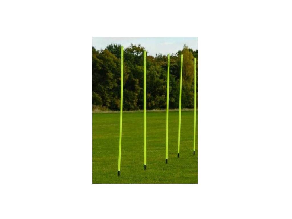 Vytvořte si tréninkovou agility dráhu během chvilky pomocí slalomových tyčí Flexi 160. Tyč je vyrobená z PVC materiálu, s kovovou pružinou a hrotem pro zapíchnutí do země. Délka samotné PVC tyče je 160 cm, celková délka včetně hrotu je 173 cm, průměr tyče je 25 mm a její hmotnost přibližně 510 g. Díky pružině se při kontaktu tyč vždy vrátí do původní polohy. Uvedená cena je za 1 ks. Parametry: - délka tyče: 160 cm - celková délka: 173 cm - průměr tyče: 2,5 cm - hmotnost: 0,51 kg - materiál: PVC, kov - použití: travnatý povrchDoplňkové parametry