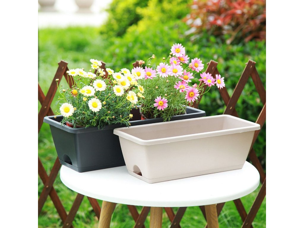 Truhlík včetně podmisky Merco Flora je vhodný každého zahrádkáře i toho, kdo si chce zkrášlit květinami či bylinkami svůj balkón a terasu. Truhlík vyrobený z plastu je lehký a mírně ohebný, použijete jej uvnitř i venku. Spodní otvory na bocích truhlíku slouží pro vylití přebytečné vody z podmisky. Díky jednoduchému designu spojíte i rozpojíte podmisku s truhlíkem během vteřiny. Pokud hledáte způsob pro zavěšení truhlíku na balkoně a terase, v naší nabídce také naleznete držák Merco Flora Plus, který je určený přímo pro tyto truhlíky. - materiál: plast - vnější rozměry truhlík: 49 / 41 x 18 / 12 x 14 cm (horní délka / spodní délka x horní šířka / spodní šířka x výška) - vnější rozměry podmiska: 42 x 12,5 x 1,5 cm - celková hmotnost: cca 270 gDoplňkové parametry