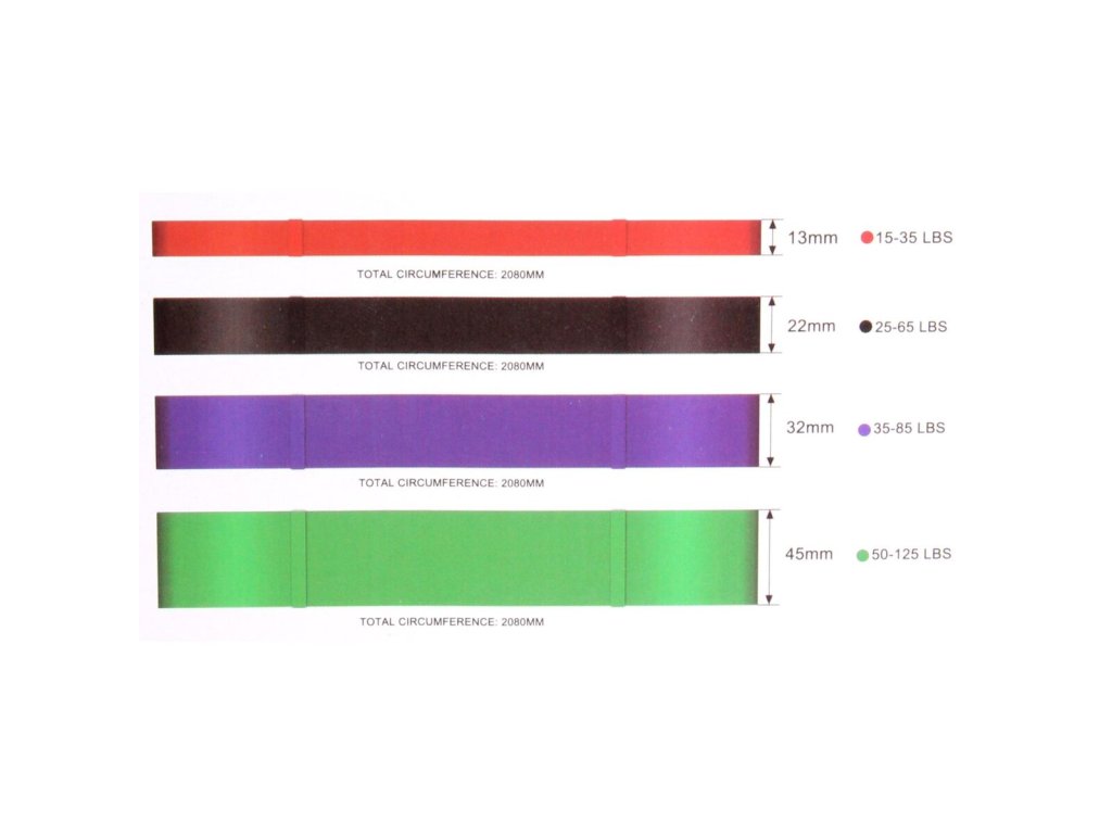 Kompletní sada čtyř odporových gum Merco Force 4 TPE v přenosné taštičce. Odporové gumy jsou lehký, efektivní a všestranný posilovací nástroj, který můžete použít doma, na workoutovém hřišti, v posilovně, fitness centru nebo v parku. Vhodné jsou nejen pro silový trénink ale i kompenzační cvičení nebo jako pomůcka při strečinku. Expandery můžete využívat samostatně nebo ve spojení na hrazdách, bradlech nebo tyčích. Gumy jsou vyrobeny z vrstveného přírodního latexu. Nenechávejte expandery na přímém světle nebo ve velmi teplém prostředí. Na výběr máte ze čtyřech různých odporů: červená - 2080 x 4,5 x 13 mm; 7 - 16 kg černá - 2080 x 4,5 x 21 mm; 11 - 30 kg fialová - 2080 x 4,5 x 32 mm; 16 - 38 kg zelená - 2080 x 4,5 x 44 mm; 23 - 57 kgDoplňkové parametry