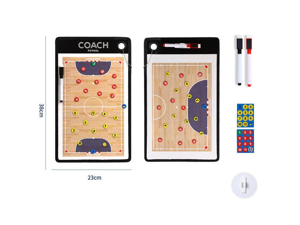Merco Futsal 38 patří mezi základní vybavení každého trenéra futsalu a slouží pro demonstrování a plánování herních strategií. Pro rozmístění hráčů v poli využijete dvě sady odlišně barevných magnetů s čísly a pro další tahy a znázornění pohybů hráčů popisovač s houbičkou. Magnetická tabule nabízí z jedné strany náhled na celé hřiště a z druhé strany na polovinu hřiště. Taktická deska Merco Futsal 38 je nejsnazší a nejrychlejší cesta pro vaše přesné herní pokyny hráčům kdykoliv během zápasu! - rozměry tabule: 38 x 23 cm - hmotnost balení: cca 0,4 kgDoplňkové parametry
