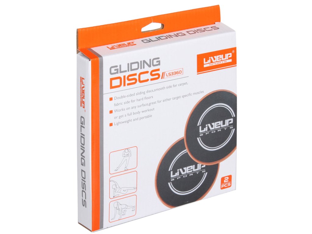 Klouzavé disky LiveUp Gliding Disc "přivážejí" nový rozměr posilování, tvarování postavy a zpevňování vnitřního svalstva těla. Princip cvičení spočívá v klouzavých pohybech po podlaze v různých směrech. Velkou výhodou klouzavého pohybu je velká variabilita a rozsah cviků a šetrnost ke kloubům během cvičení. Klouzavé disky LiveUp Gliding Disc také vynikají svou univerzálností. Je možné je použít jak na ruce, tak i na nohy a především na všechny druhy interiérových povrchů, kdy se hladká strana využívá na koberce a textilní strana je určena pro tvrdé a hladké podlahy. Klouzavé disky LiveUp Gliding Disc jsou mobilní, lehká, zábavná a především velice účinná tréninková pomůcka k posílení celého těla bez zbytečných okolností. Průměr disku je 180 mm a výškou 9 mm.Doplňkové parametry