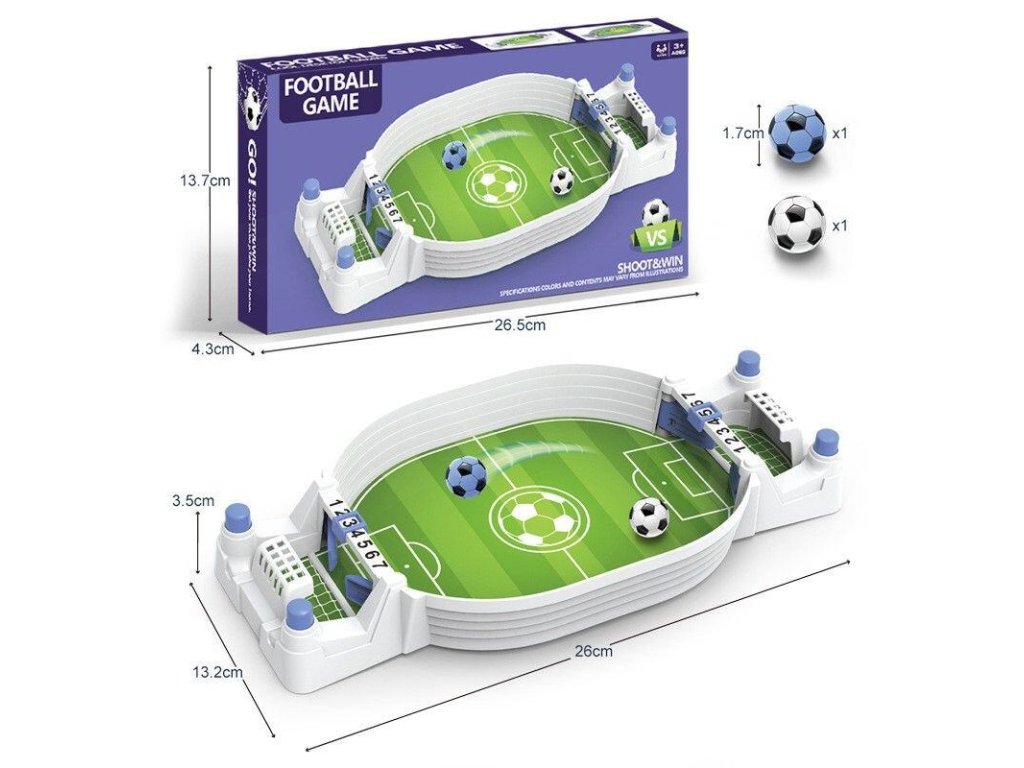 Pokud jste soutěživý a chcete volný čas trávit zábavnou aktivitou, tento malý stolní fotbal pod názvem Home League je ideální pro každého! Vyzvěte kamaráda nebo vytvořte rovnou turnaje v této stolní hře. Stačí vám rychlost, skvělá reakce a můžete zvednout trofej vítězů nad hlavu právě vy. Kdo první vstřelí 7 gólů, vítězí. Hřiště o délce 17 cm a šířce 13 cm je dostatečně velké a zároveň skladné pro každou domácnost. Na každé straně jsou dvě tlačítka, která slouží k odrážení míče na levé a pravé straně, fungující na klasický princip jako pinball. Součást balení: - 1x hřiště - 2x míč - materiál: ABS Upozornění: Výrobek není vhodný pro děti mladší 3 let. Hrozí spolknutí malých částí!Doplňkové parametry