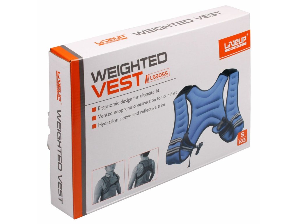 Zátěžová vesta LS3055 od značky LiveUp je výbornou pomůckou při fitness trénincích. Uplatnění rozhodně najde jak na vrcholové, tak amatérské úrovni. Vhodná pro veškeré sportovní aktivity. Vesta poslouží například při běhu nebo v případě, že potřebujete zvýšit svou hmotnost pro cvičení s vlastní vahou. Cvičením s touto vestou zvýšíte fyzickou kondici a sílu a tím pádem dosáhnete lepších výkonů. Hmotnost vesty je 5 kg s univerzální velikostí. Výhodou vesty je snadné nasazení, kdy postupujete jako při nasazování batohu, a na přední straně pouze zapnete přezku, díky které vesta nesklouzne. K dostání je v modro-černém provedení.Doplňkové parametry