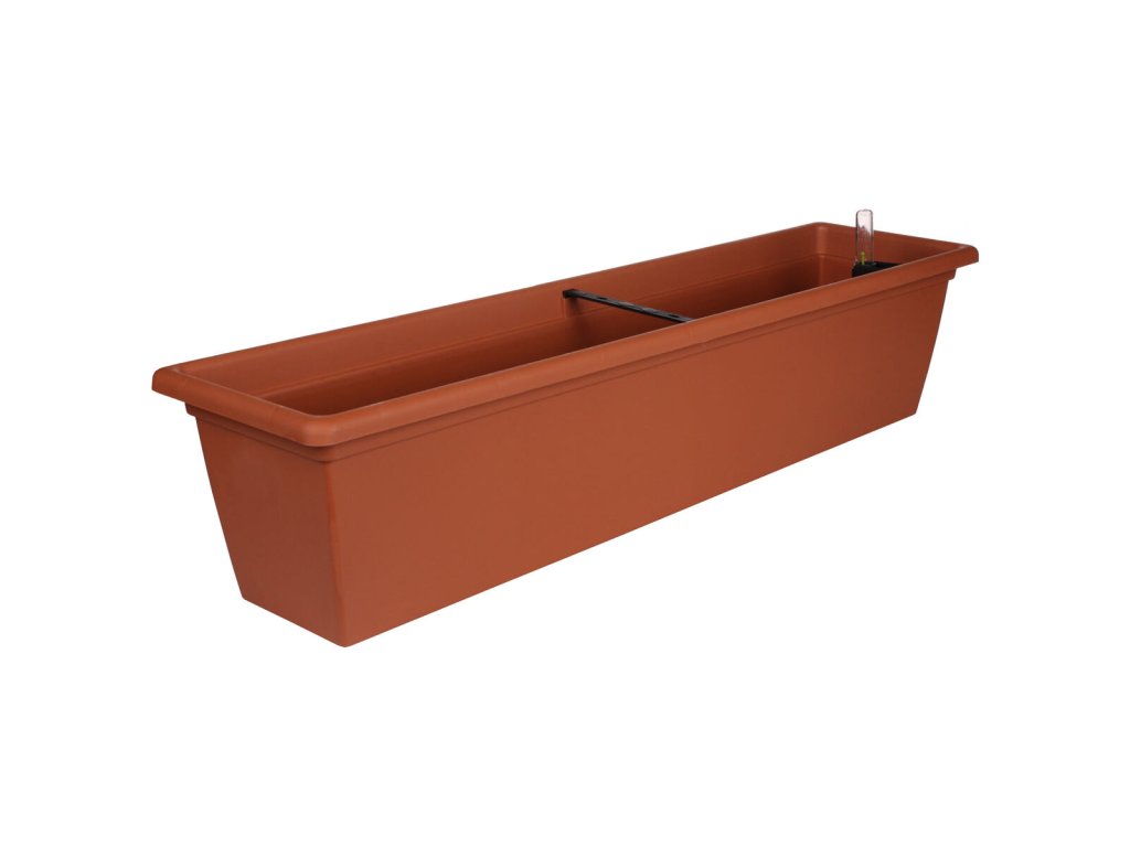 Plastkon Magnolie 2Smart je plastový truhlík v klasickém stylu se zavlažovacím systémem. Na dně truhlíku se nachází vyvýšené vyjímatelné dno, které slouží jako zásobník vody pro rostliny a zároveň se jím dostává vláha ke kořenům. Součástí balení je nalévací trubička s ukazatelem hladiny vody v květináči. Hlavní výhodou samozavlažovacího truhlíku je, že ho jednorázově naplníte vodou a pak není nutné několik dní rostliny zalévat (záleží na ročním období). Truhlík Magnolie je vyrobený z recyklovaného plastu a je vhodný pro pěstování rostlin uvnitř i venku. - celkové rozměry: 78,5 x 19,5 x 17,5 cm (D x Š x V), 71 x 12 cm (spodní délka x spodní šířka) - 14,9 L - hmotnost cca: 0,84 kgDoplňkové parametry