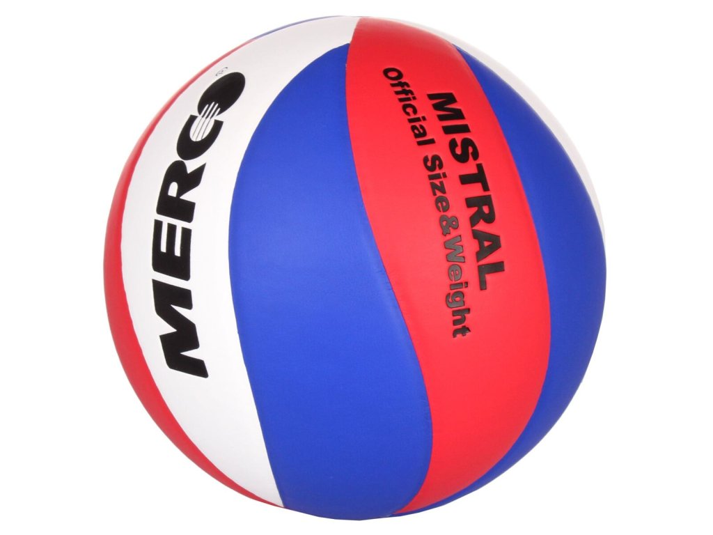 Míč na volejbal Merco Mistral je tréninkový model vhodný pro rekreační i pravidelné hráče a školy. Lepený míč je vyrobený z měkčeného PU pláště v moderním 10ti panelovém designu a má oficiální velikost s obvodem 650 – 670 mm a hmotností 260 – 280 gramů. Vzdušnice z butyl kaučuku si dlouhodobě udržuje svůj tvar, živý odraz i tlak. Míč je vhodný pro trénink v hale i venku. Upozornění: Míč vždy nafoukněte pomocí navlhčené jehly na doporučený tlak (uvedeno na míči), jinak riskujete poškození míče!Doplňkové parametry
