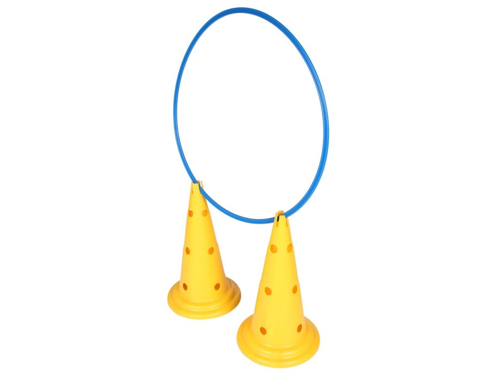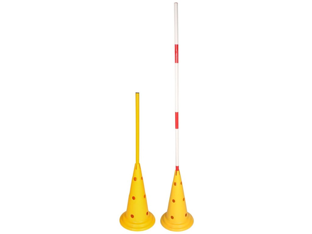 Značkovací kužel ve dvou barvách ( oranžová a žlutá) s výškou 52 cm pro vymezení hracího hřiště nebo pro vytvoření slalomové a překážkové tréninkové dráhy. Víceúčelový kužel Multi je na rozdíl od klasických modelů velmi variabilní a má univerzální využití. V jeho plášti je celkem 12 otvorů s průměrem 3 cm umístěných ve třech výškách. Na špičce kuželu je křížový výřez. Do otvorů je možné zasunout v libovolné kombinaci překážkové tyče a do výřezu na vrcholu umístit další tréninkové pomůcky s menším průměrem (např. kruh). Kužel Multi doporučujeme zkombinovat s plastovými tyčkami P1, P2, P3, teleskopickou tyčí P4 nebo HP překážkovým kruhem. Parametry: -výška 52 cm -otvory ve výškách 8, 23, 38 cm -základna kužele: průměr 29,5 cm -hmotnost: 0,5 kg Materiál: plastDoplňkové parametry