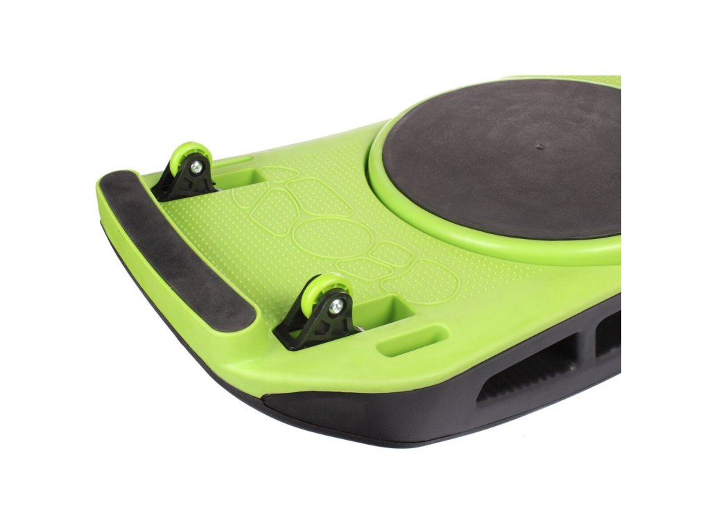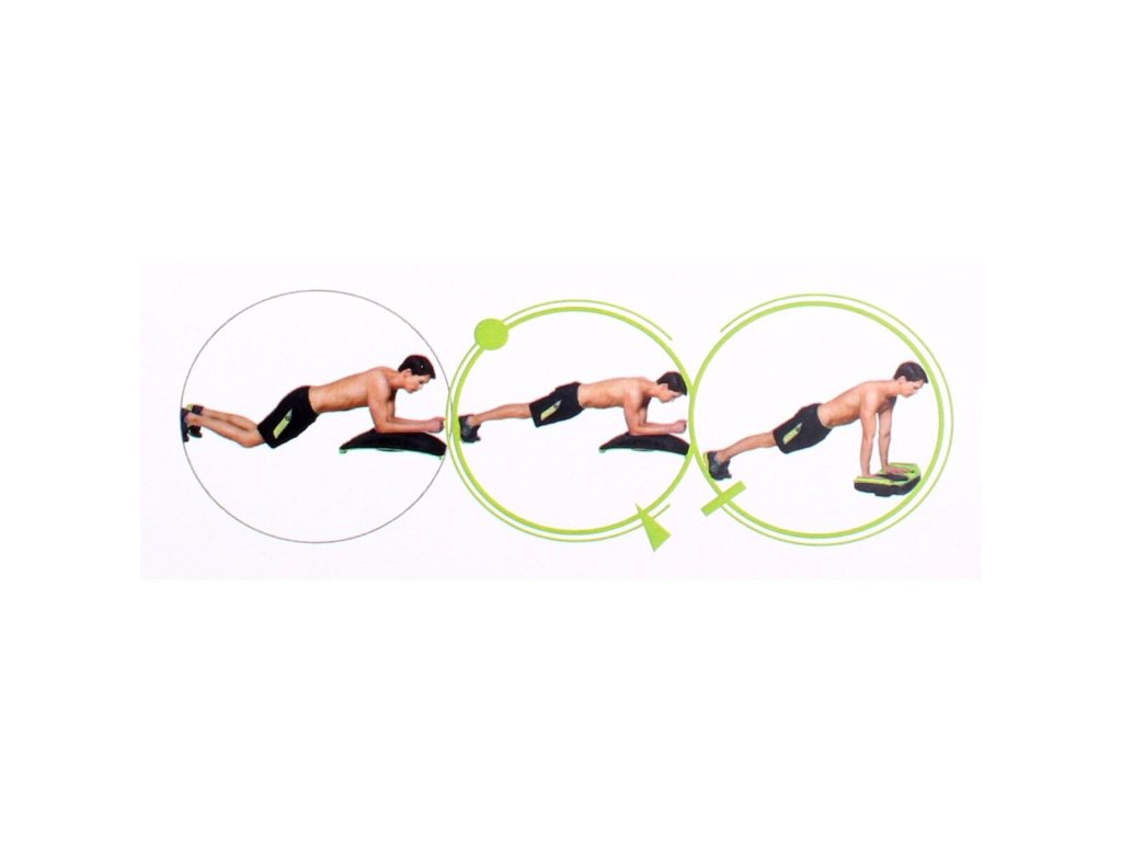 S fitness deskou Multigym si důkladně procvičíte celé tělo. Je lehká a skladná, cvičit tedy můžete prakticky kdekoliv a kdykoliv. Balanční tvar a vybavení základny Multigym desky umožňuje téměř neomezené druhy variant pohybů. Deska je vyrobená z odolného ABS plastu s rozměrem 69 x 32,5 x 17,5 cm. Její maximální nosnost je 100 kg. Součástí balení je podrobný návod k použití a přehledný průvodce s doporučenými typy cviků, aby váš trénink byl co nejúčinnější. 6 základních druhů pohybů s Multigym deskou: BALANCE : cvičení rovnováhy při houpání na desce TWIST : rotace na disku – zmenšování objemu pasu a posilování šikmých břišních svalů CRUNCH : sklapovačky, zkracovačky, sed-leh - posilování celého středu těla, horních a dolních břišních svalů. ROLL UP a ROLL OUT : cviky na posilování středu těla s oporou vleže LEGS UP : zvedání nohou a jejich posilování, posílení břicha a hýžďových svalů ELASTIC BANDS – posilování svalů rukou za pomoci elastického expanderu Vybavení cvičební desky Multigym: základna výsuvná kolečka rotační disk elastický expander na ruce 2 x stabilizátor omezující výkyv desky Rozměr : 69 x 32,5 x 17,5 cm Váha : 5 kg Materiál : pevný ABS plastDoplňkové parametry