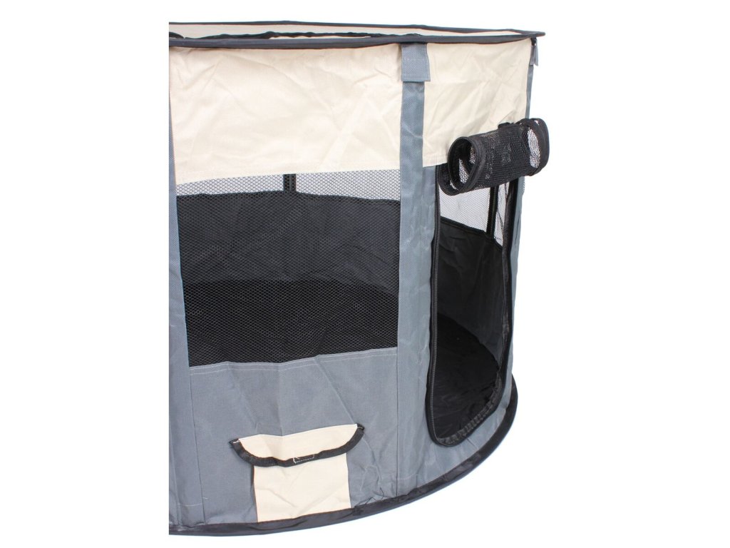 Ohrádka Pet Round je praktický pomocník, kterého oceníte na doma i na cestách pro vaše malé čtyřnohé mazlíčky, které potřebujete mít na očích. Celou ohrádku je možné uzavřít a vy tak můžete mít jistotu, že se v případě nepozornosti štěňátko nebo koťátko nezatoulá, kam nemá. Lehce skládací ohrádka vyrobená z tkaniny 600 Oxford má celkový průměr 86 cm a výšku 56 cm. Ohrádka má jeden horní vstup a dva boční - včechny na klasický zip. Na boku je navíc malá kapsička, kam můžete dát například granule. Hmotnost ohrádky je přibližně 1,2 kg a díky tomu je zaručené jednoduché přenášení. Rozložení zabere jen pár vteřin bez jakéhokoliv nářadí. Stačí vsunout plastové tyčky do kapsiček v obvodu a máte ohrádku připravenou. - balení: 10 plastových tyček, ohrádka - 600 Oxford tkanina, síťovina - rozměry po sestavení: průměr 86 cm, výška 56 cm - 2 boční otvory + 1 horní otvor na klasický zip - malá boční kapsička na suchý zip - jednoduché složení - součástí polyesterová taška - hmotnost balení: 1,2 kg - rozměr balení: 45 x 45 x 15 cmDoplňkové parametry