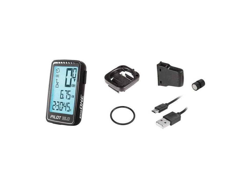 Bezdrátový cyklocomputer One Pilot 16.0 ATS by měl patřit mezi základní vybavení každého cyklisty / cyklistky, kteří chtějí mít dokonalý přehled o svém výkonu. Tento kvalitní cyklocomputer nabízí bezdrátový přenos dat (ATS), použití na 2 kolech (kolo 1 / kolo 2), dobíjecí Li-pol baterii s kapacitou cca 120 h provozu, přehledný třířádkový displej, voděodolnou konstrukci, snadnou montáž na řídítka nebo představec kola a 16 funkcí: okamžitá rychlost, průměrná rychlost, maximální rychlost, porovnání okamžité a průměrné rychlosti, denní ujetá vzdálenost, celková ujetá vzdálenost (kolo 1 / kolo 2), denní doba jízdy, celková doba jízdy kolo (kolo 1 / kolo 2), hodiny (12/24 h), datum, teplota, auto start/stop, indikátor nabití baterie, podsvětlení displeje, extra velké číslice. Dobíjecí USB kabel je součástí balení.Doplňkové parametry